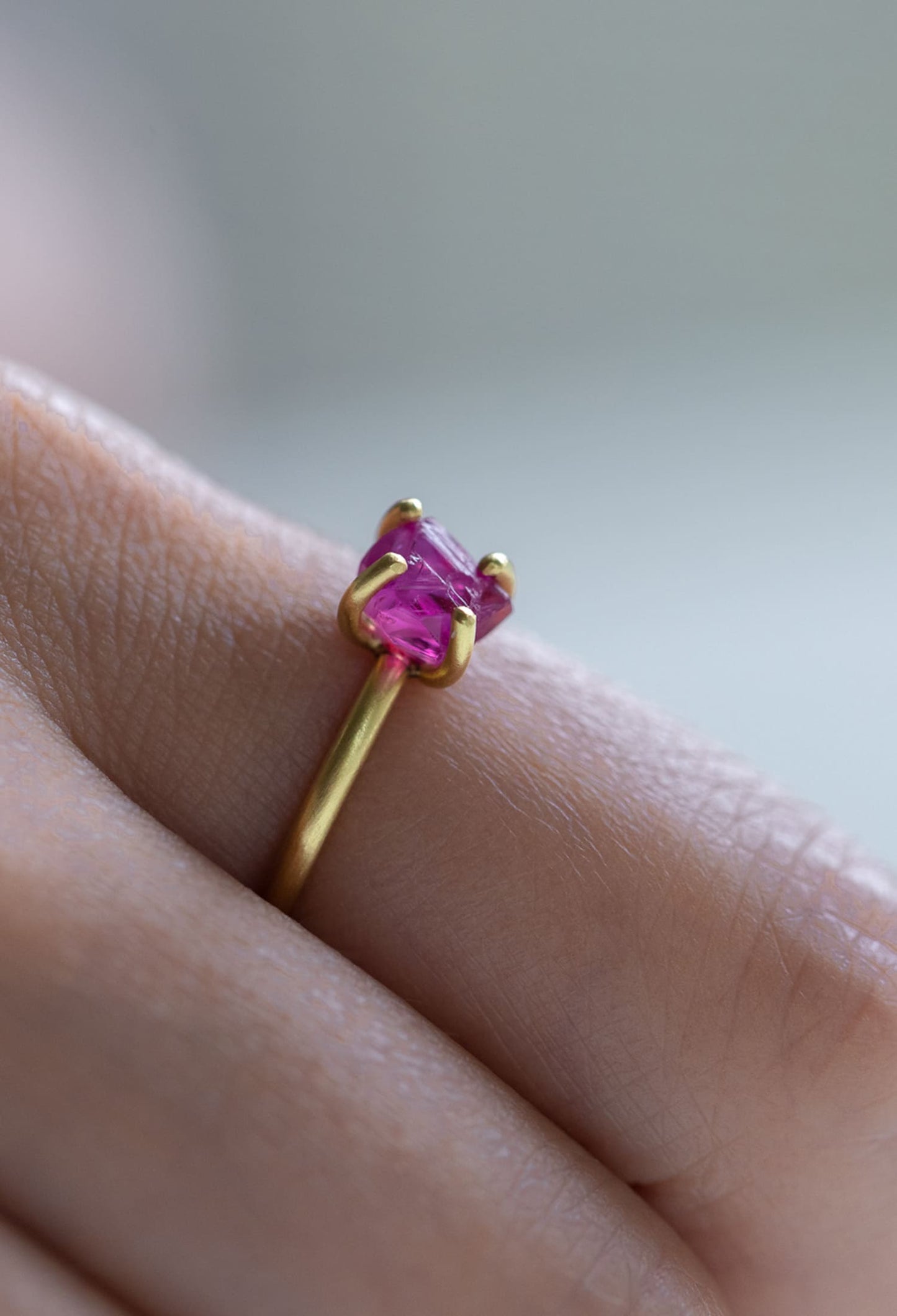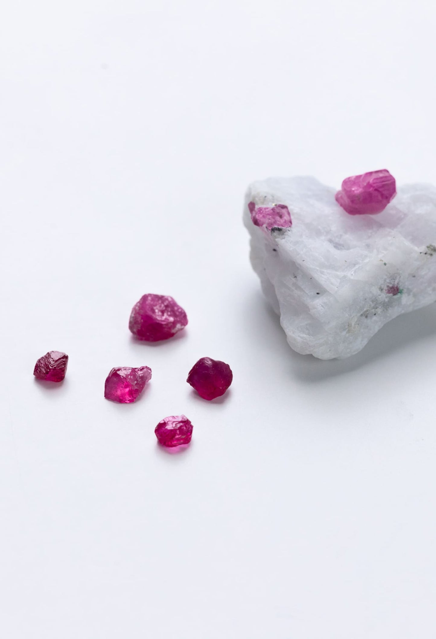 世界で最も美しいルビーの産出地として知られる、ミャンマーのモゴック産。ルビー鉱区に外国人が立ち入ることができた貴重な時期に、デザイナー自ら現地を訪れて買い付けたルビーです。