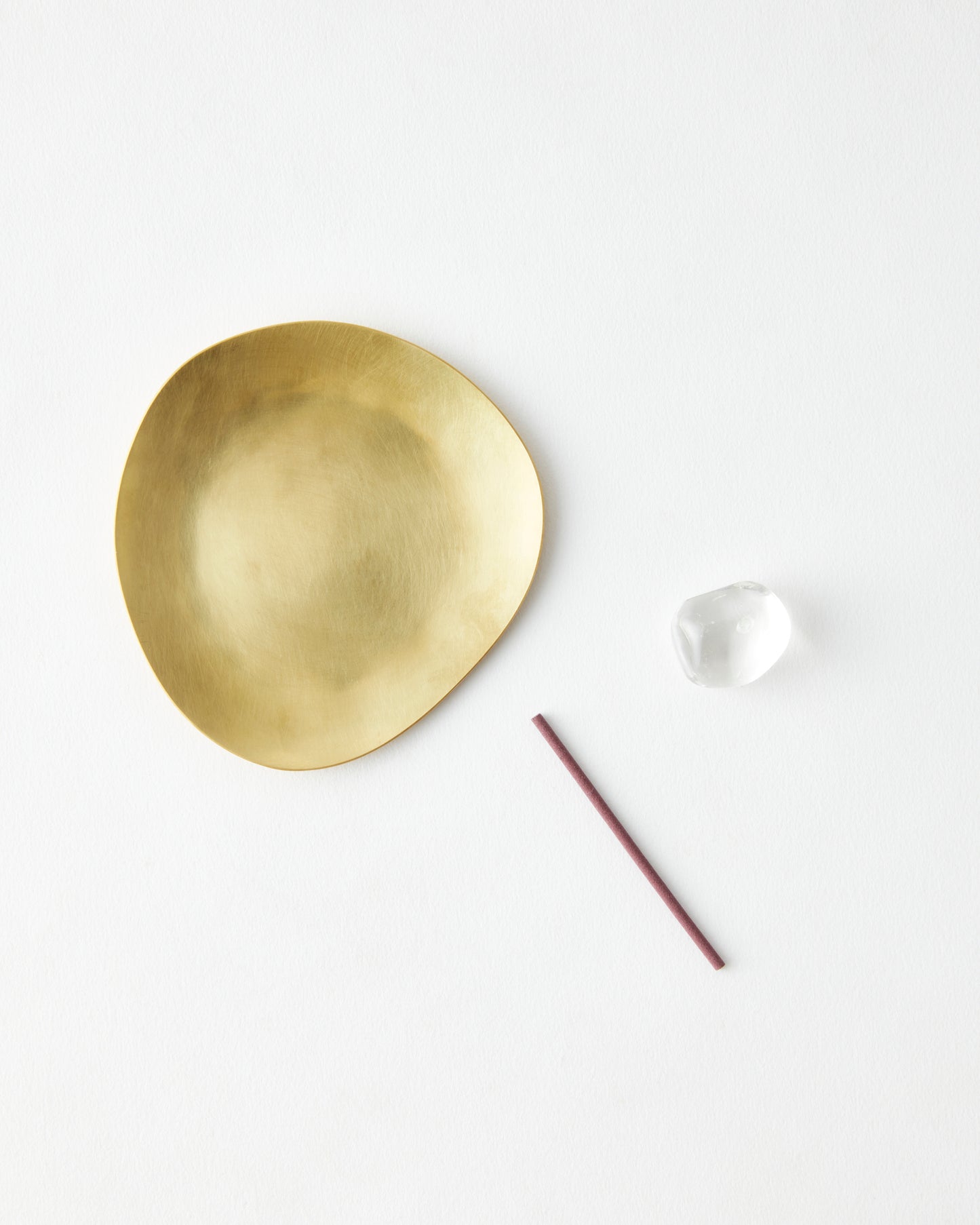 水晶のお香台に合わせて、受け皿も有機的な形状に仕立てました。こちらも手作りなので全て形が異なります。ジュエリートレイとしてもお使いいただけます。金色と銀色の2種。