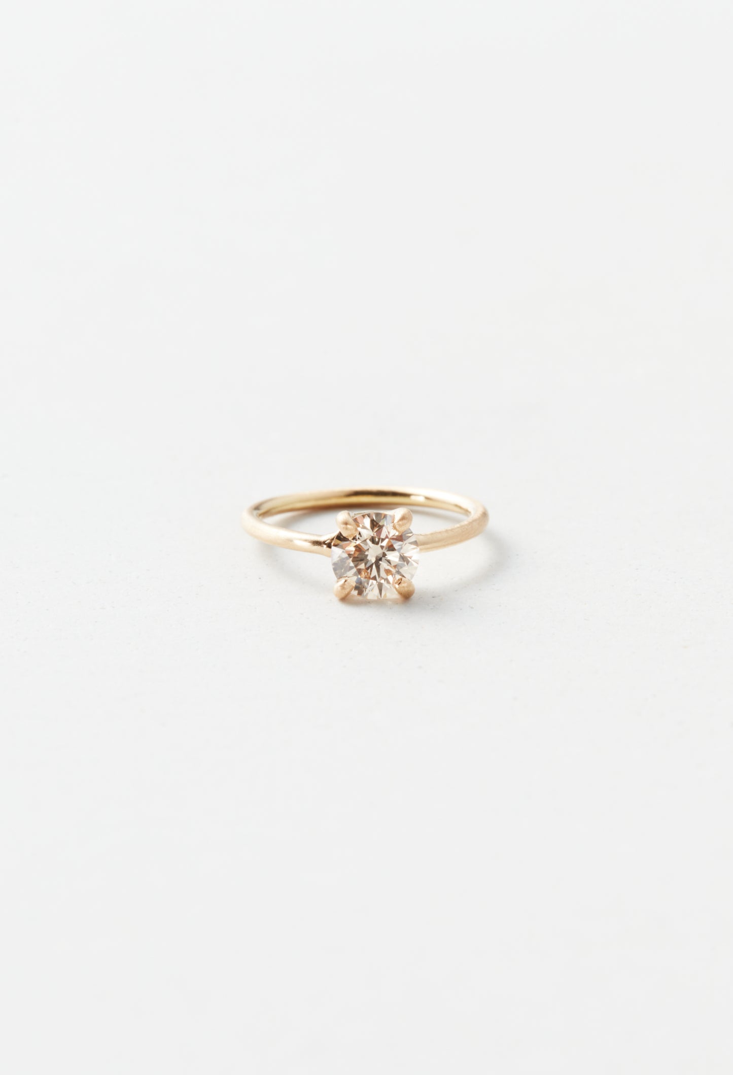 シンプルな4本爪が、より多くの光を取り入れてダイヤモンドを輝かせる設計になっています。ひとつひとつの石に合わせて石座、爪、アームをつくり、ハンドメイドで丁寧に仕上げています。