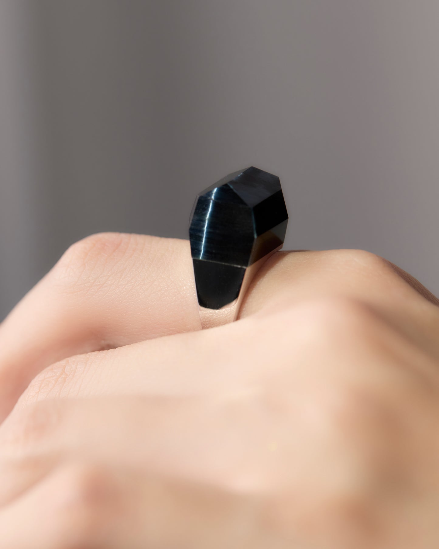 石と地金のシームレスなデザインは、日本に古くから伝わる貴石彫刻の技法「同擦り」によって仕上げられています。