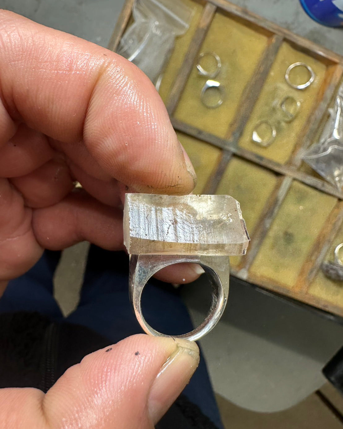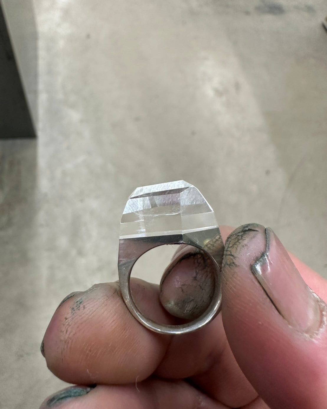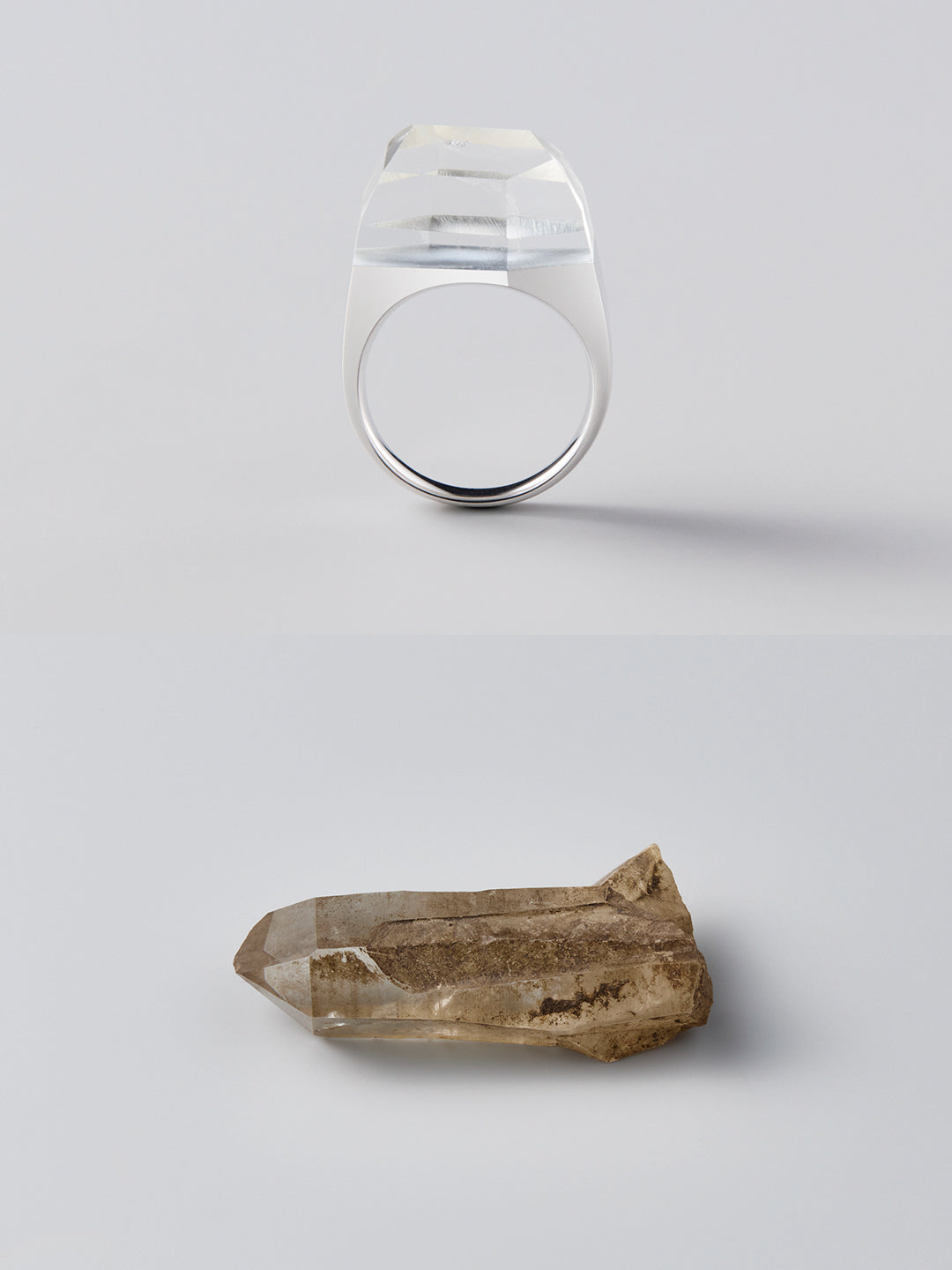 現在では採掘はほとんど行われておらず、黒平産の水晶は非常に希少な存在となっています。今回使用した水晶も、信頼するコレクターが長年大切に保管していたものを、bororoが譲り受け、ひとつのリングへと昇華させました。