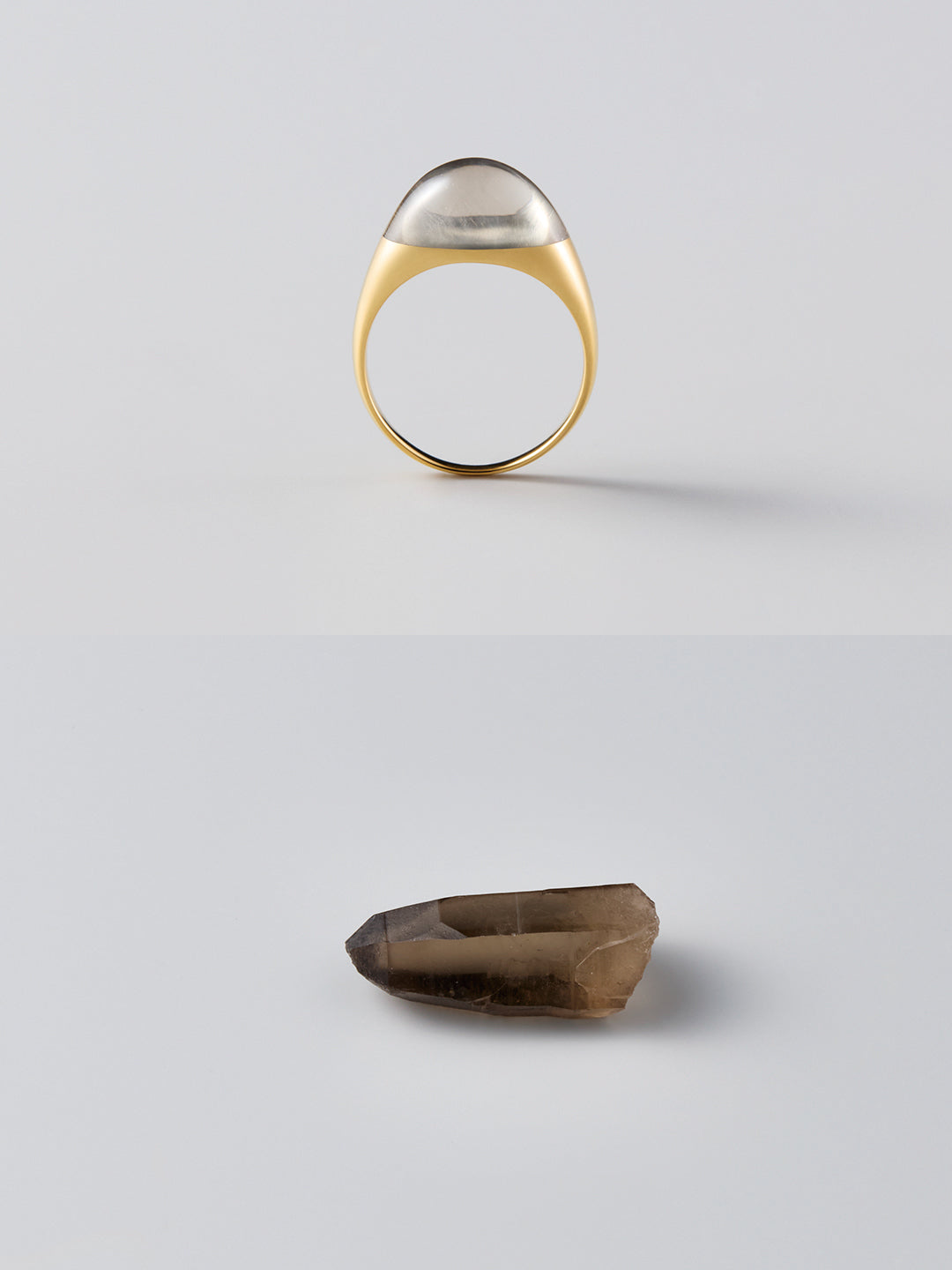 天然石の宇宙を覗く 結晶が育つ過程で現れる色の濃淡。 閉じ込められた内包物。 天然だからこそ現れる石の個性を可能な限り美しく見せるのがロックシリーズです。 石の歴史をそのまま切り取ったような存在感のあるフォルムは、着用するだけでなく、眺める楽しみも持ち合わせています。 石と地金のシームレスなデザインは、日本に古くから伝わる貴石彫刻の技法「同擦り」によって仕上げられています。 手掛けるのは、甲州貴石彫刻の第一人者、詫間宝石彫刻。 多種多様な石の性質を見極めそれぞれの個性が引き立つ美しさを追求します。