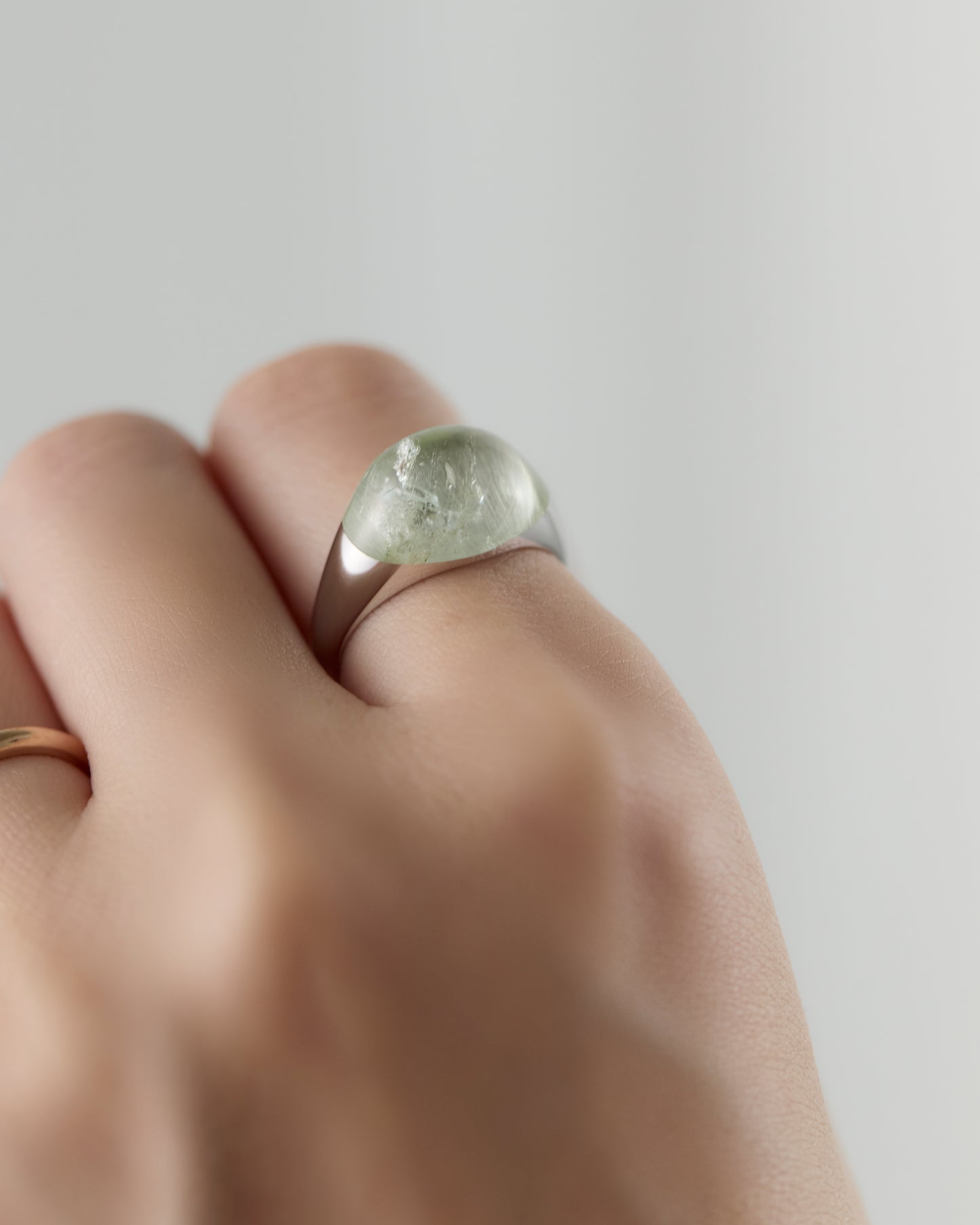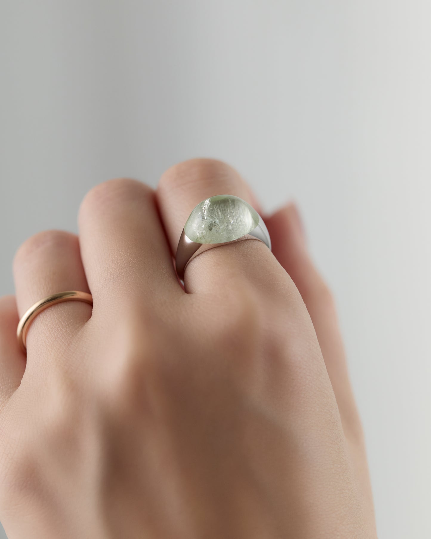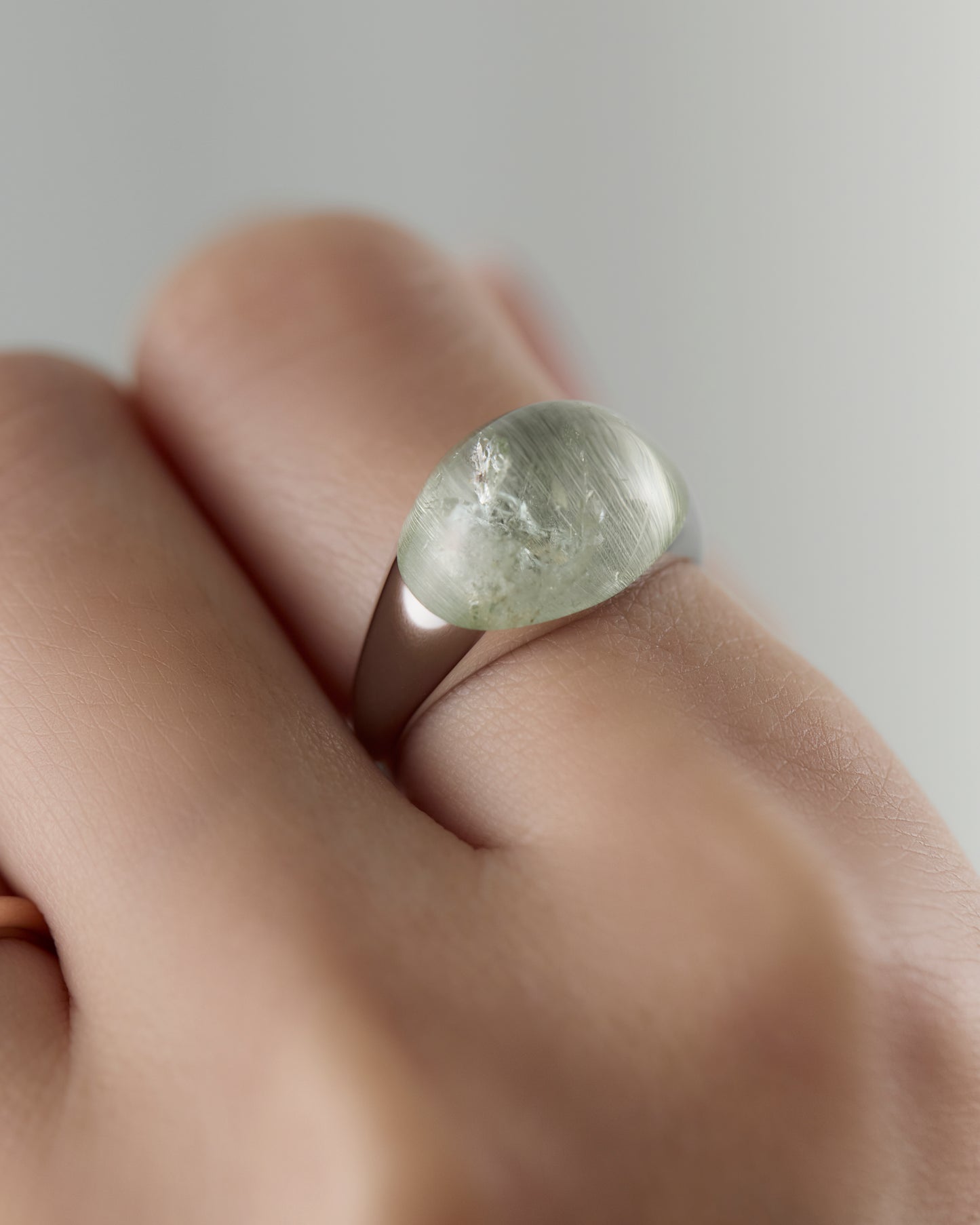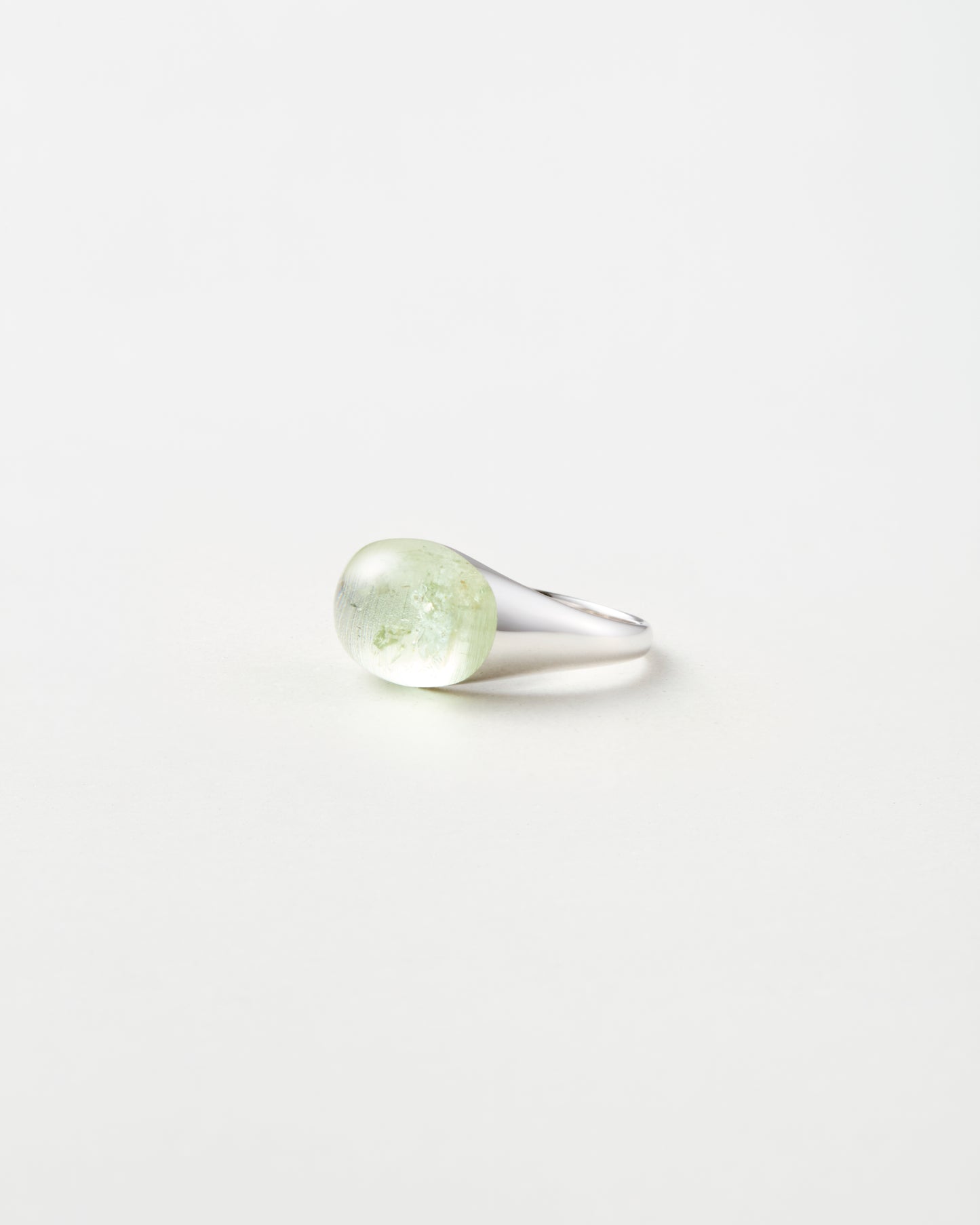 光を浴びるたびにうつろう淡いグリーンの奥行きは、森や湖の静けさを思わせます。