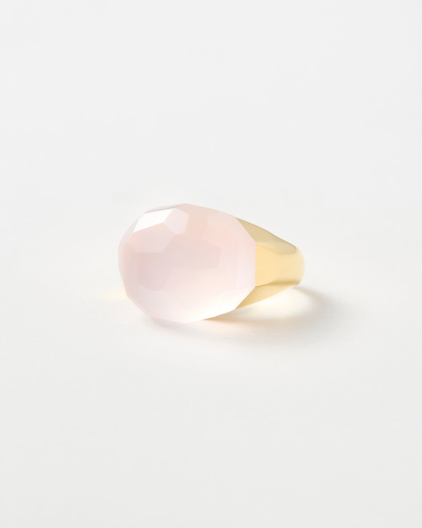 ピンクゴールドメッキのアームに、ローズクオーツの優しいピンク色が美しく調和しています。