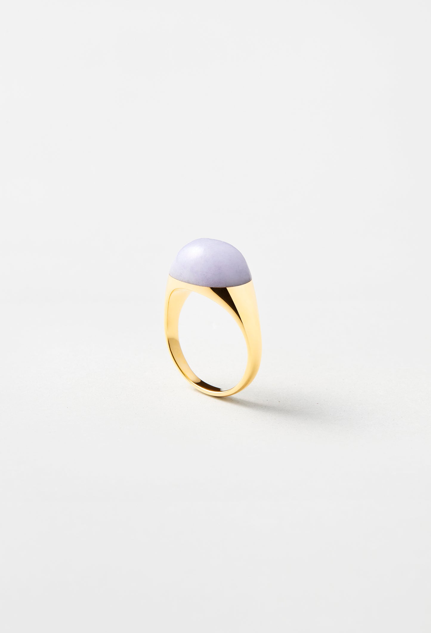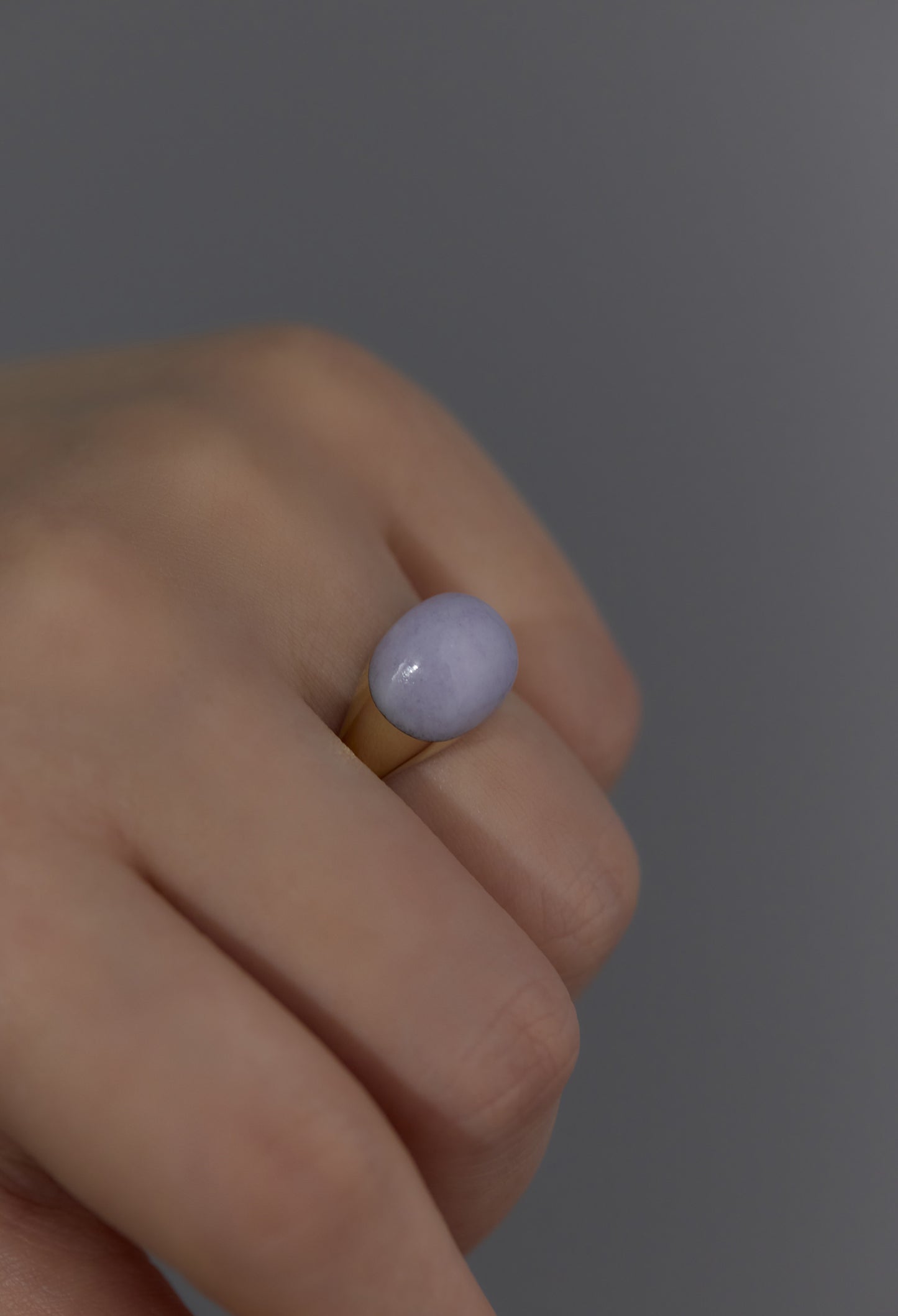 ミャンマー産の翡翠(ひすい)を用いたミニタイプのロックリング。2016年の日本鉱物学会の総会で「国石」の投票が行われたのをご存知でしょうか?最終候補に残った5つの鉱物、水晶、ヒスイ、自然金、花崗岩、輝安鉱の中から、ヒスイが選ばれました。 ヒスイは中国の石というイメージが強いと思いますが、日本では5,500年前の縄文時代からヒスイを加工して装飾品にしてきたことがわかっており、日本は世界最古のヒスイ文化発祥の地でもあるとか。