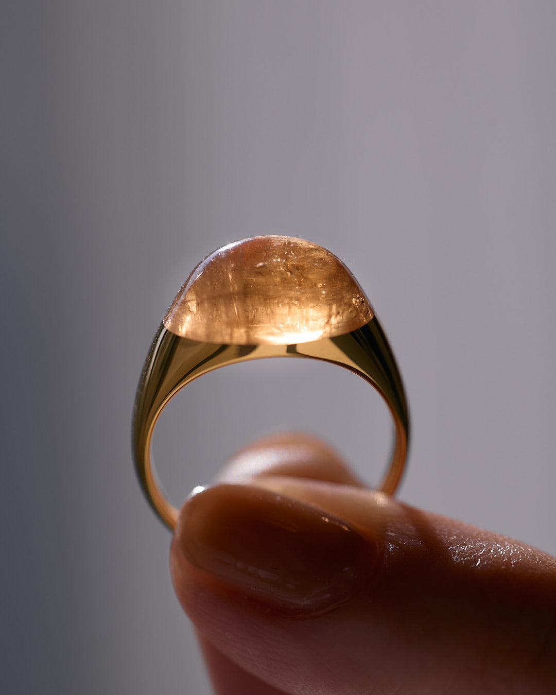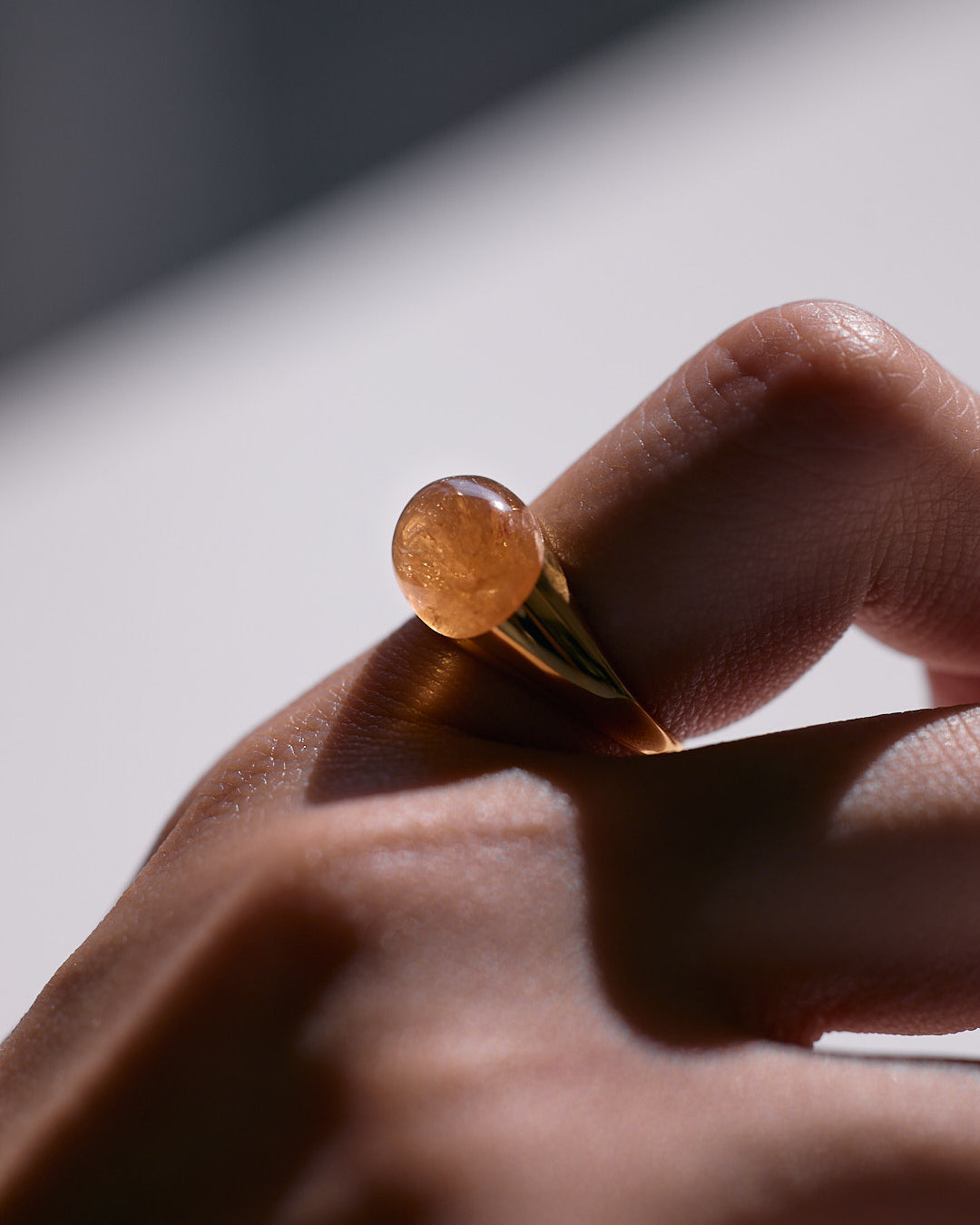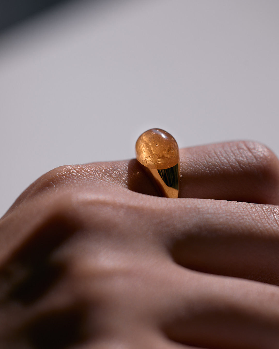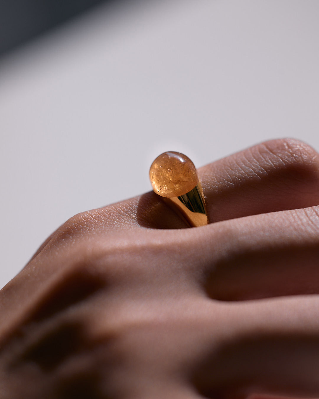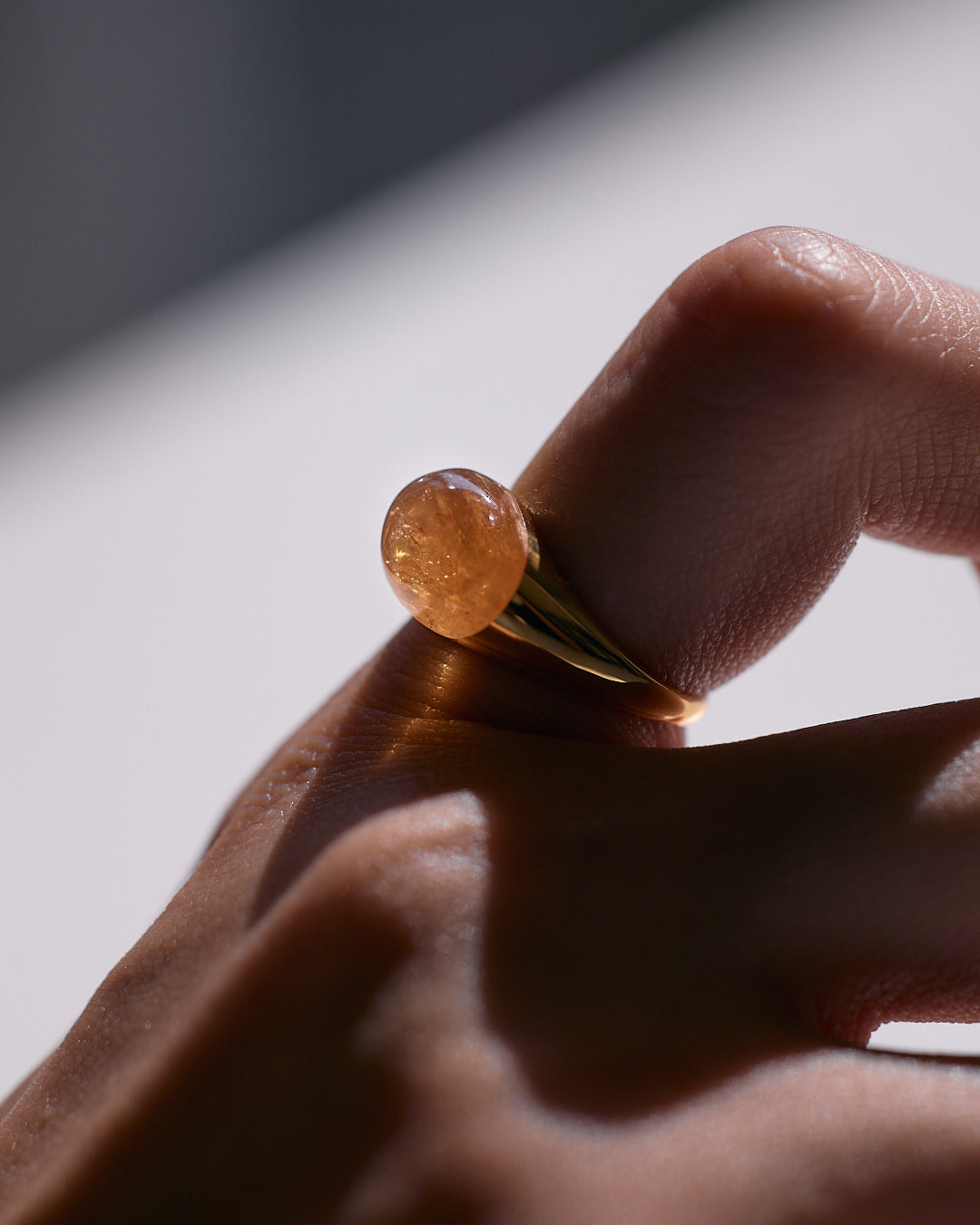 [One-of-a-kind] Aquamarine Mini Rock Ring / Round / Yellow