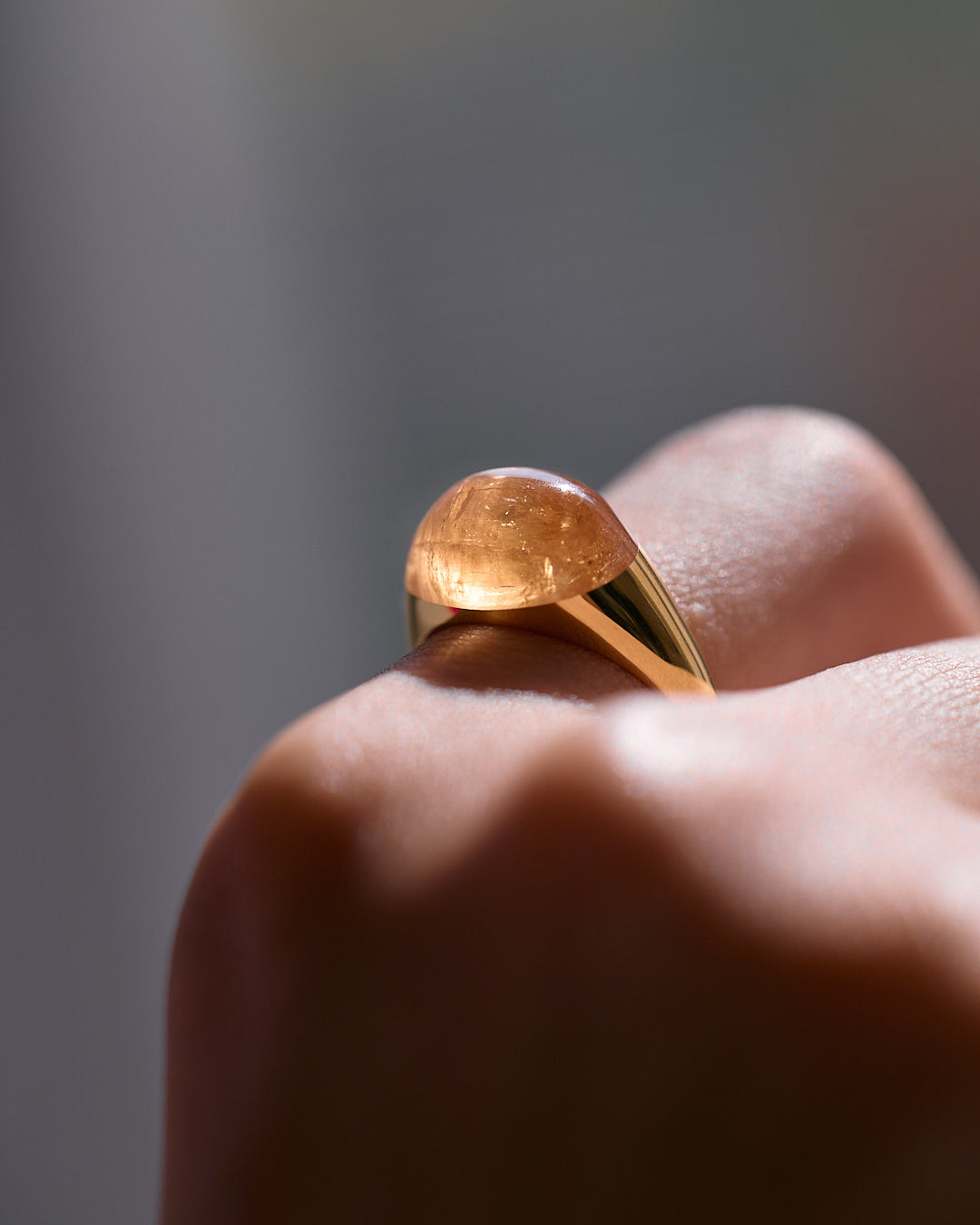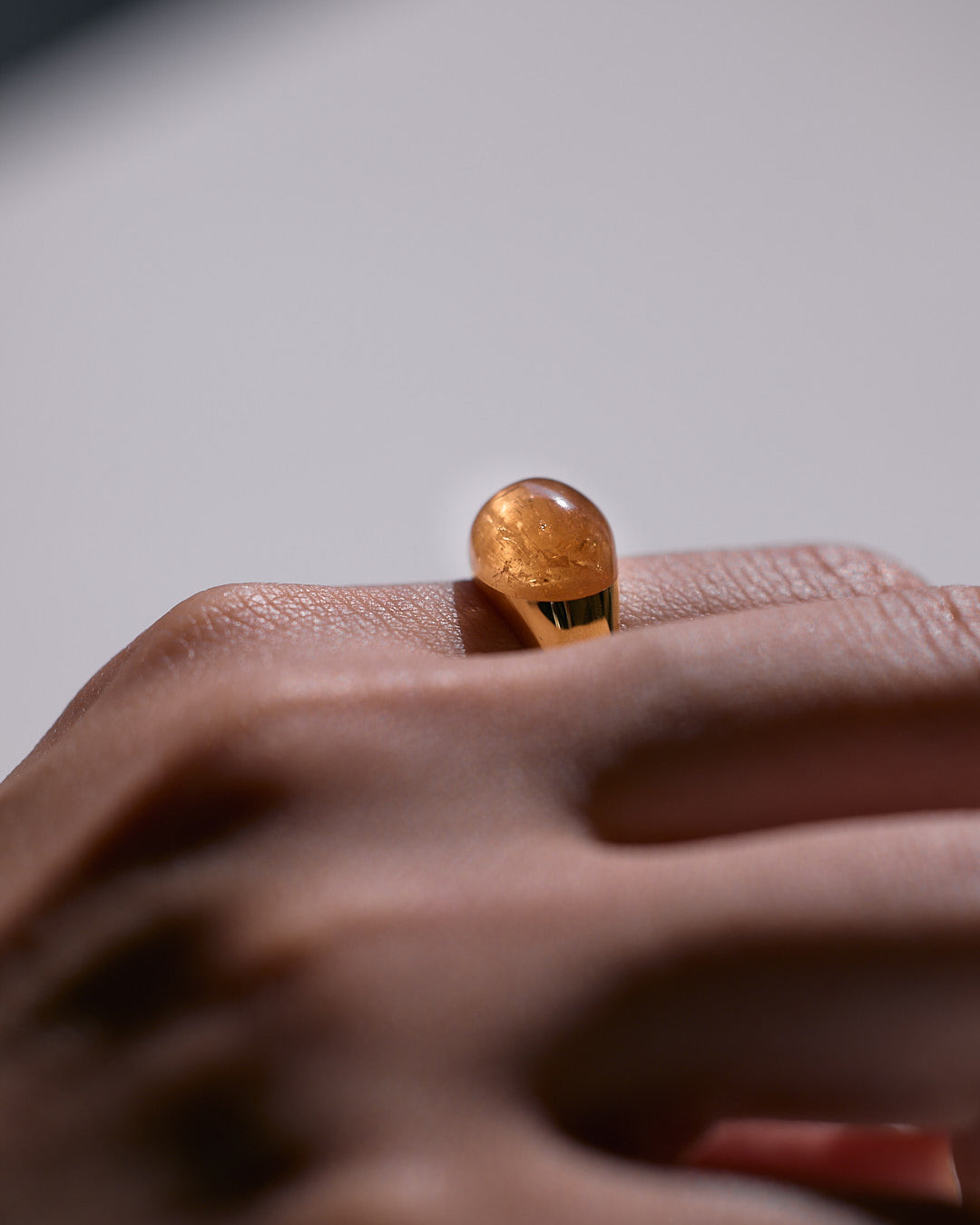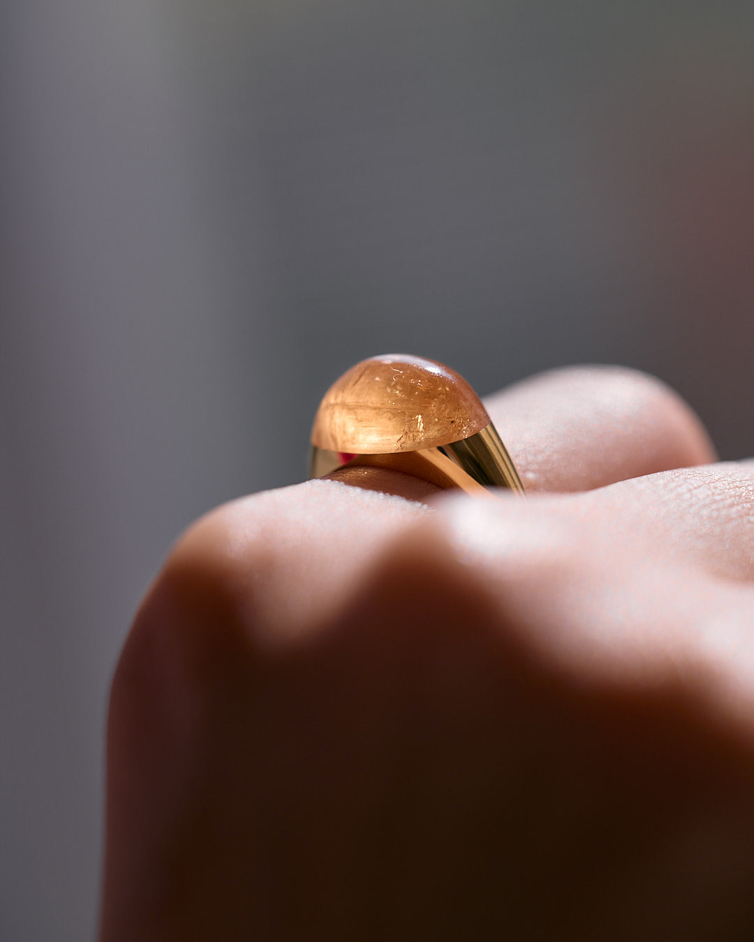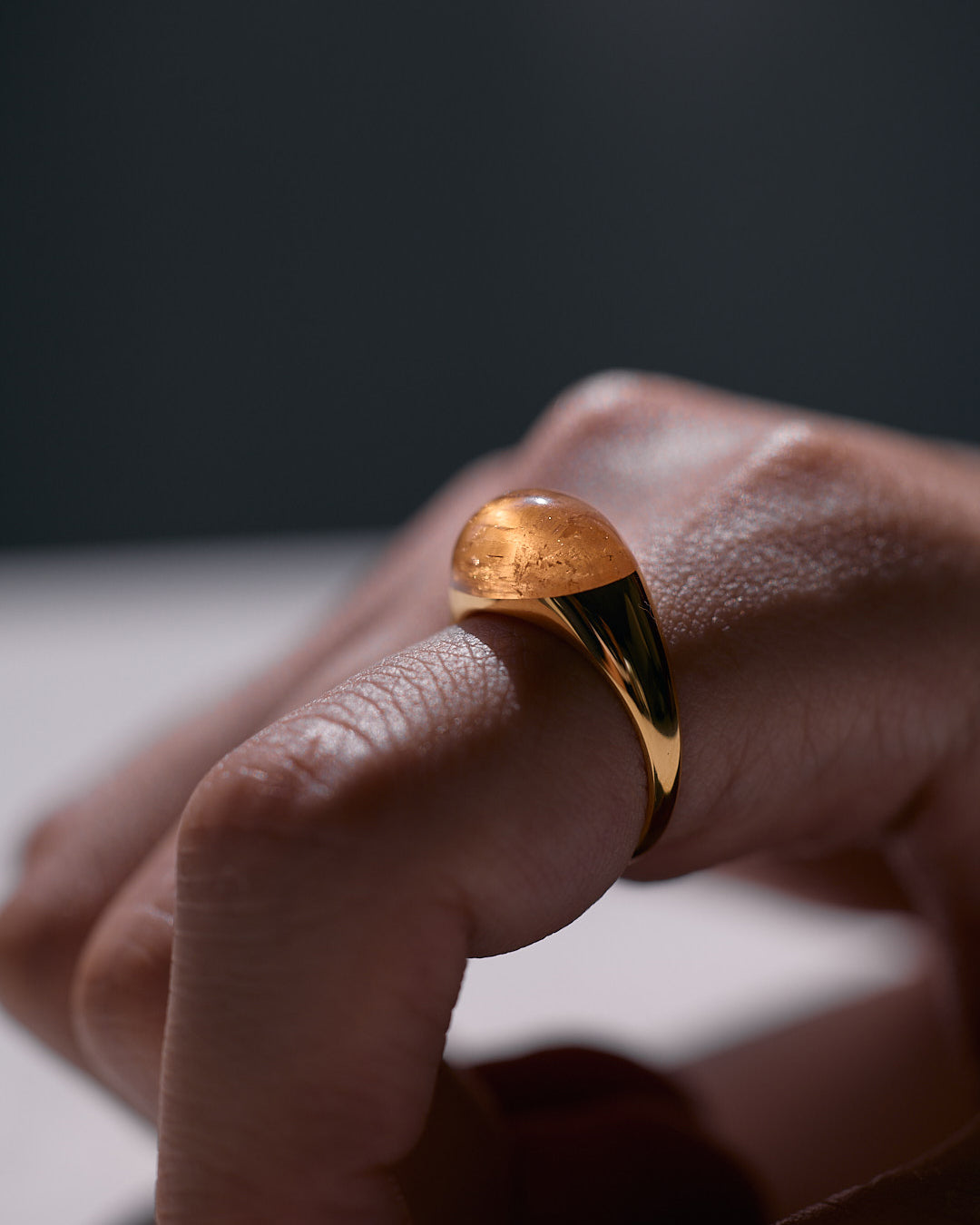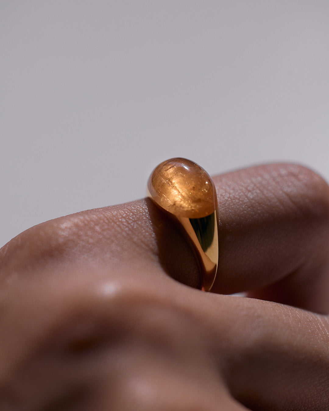 [One-of-a-kind] Aquamarine Mini Rock Ring / Round / Yellow