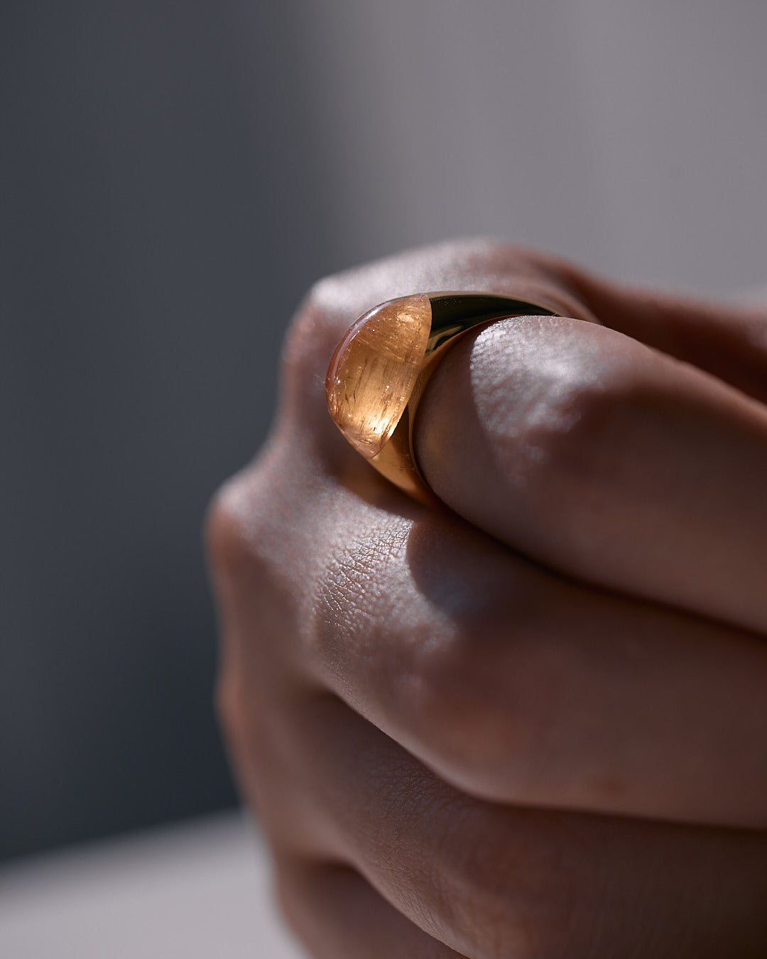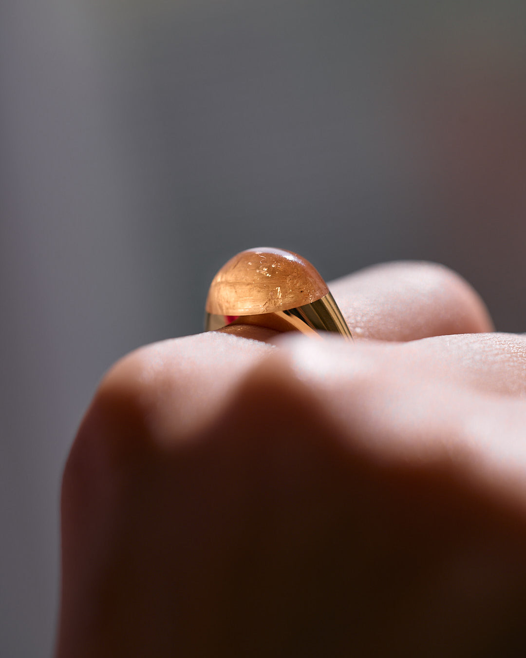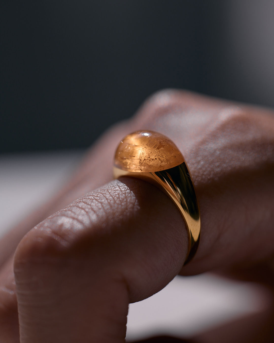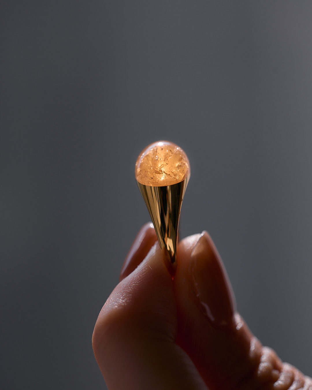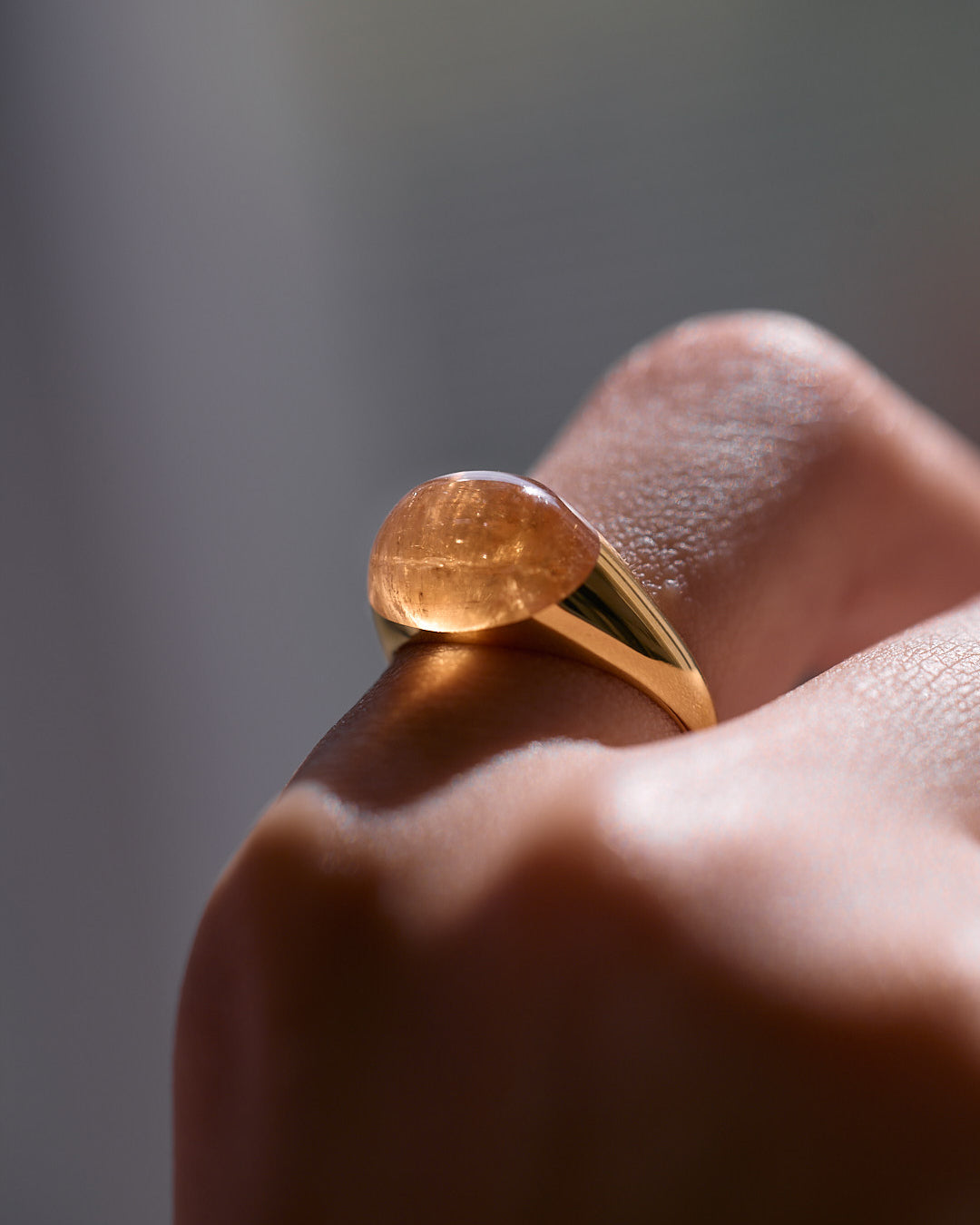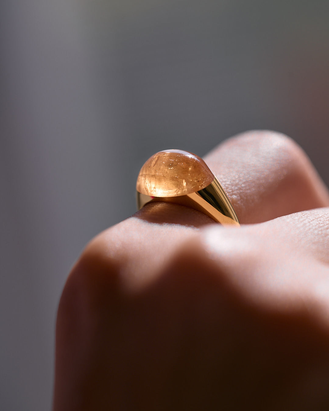 [One-of-a-kind] Aquamarine Mini Rock Ring / Round / Yellow
