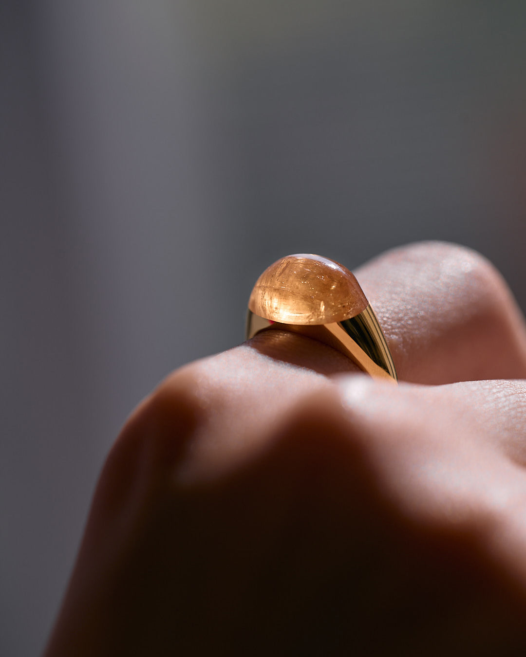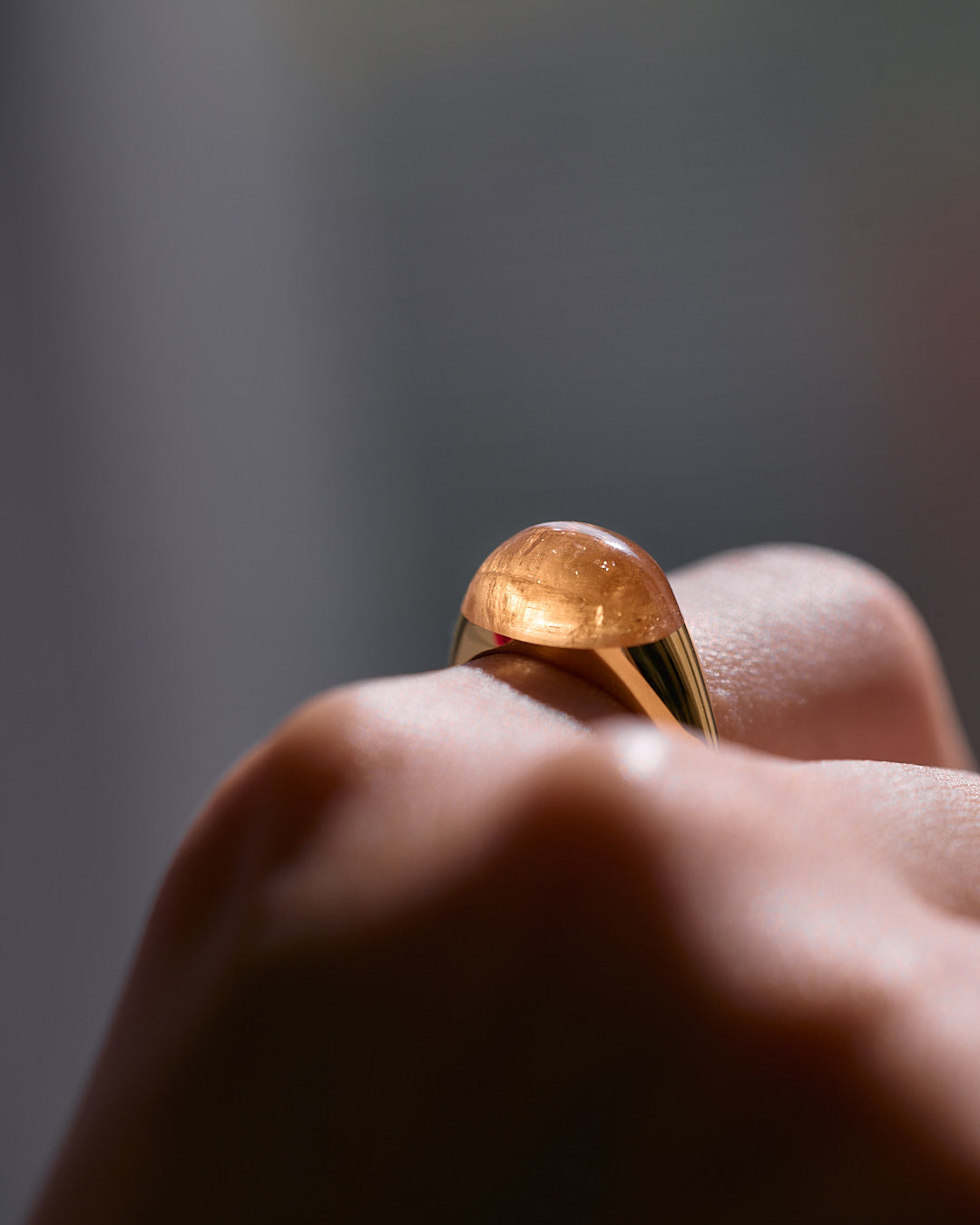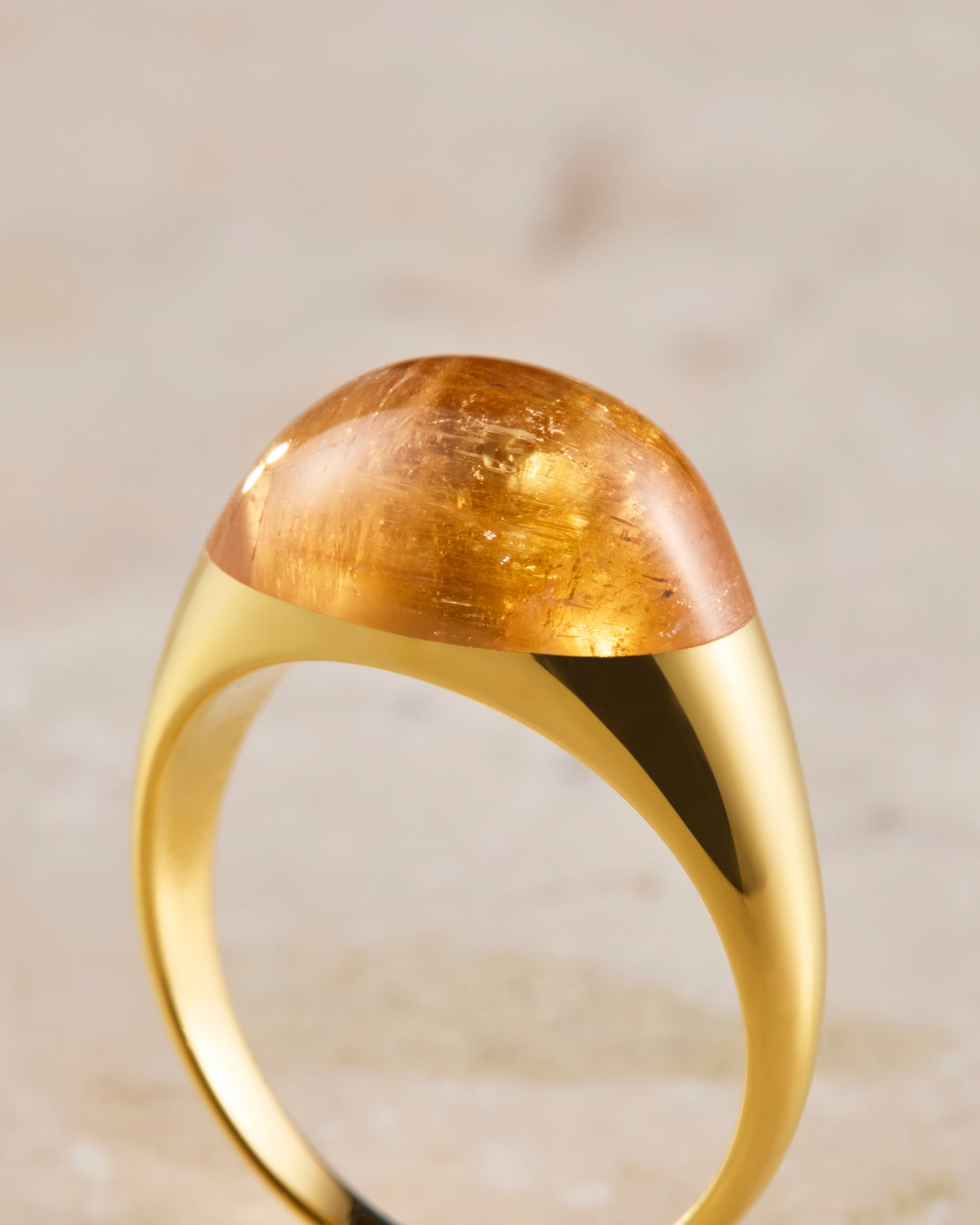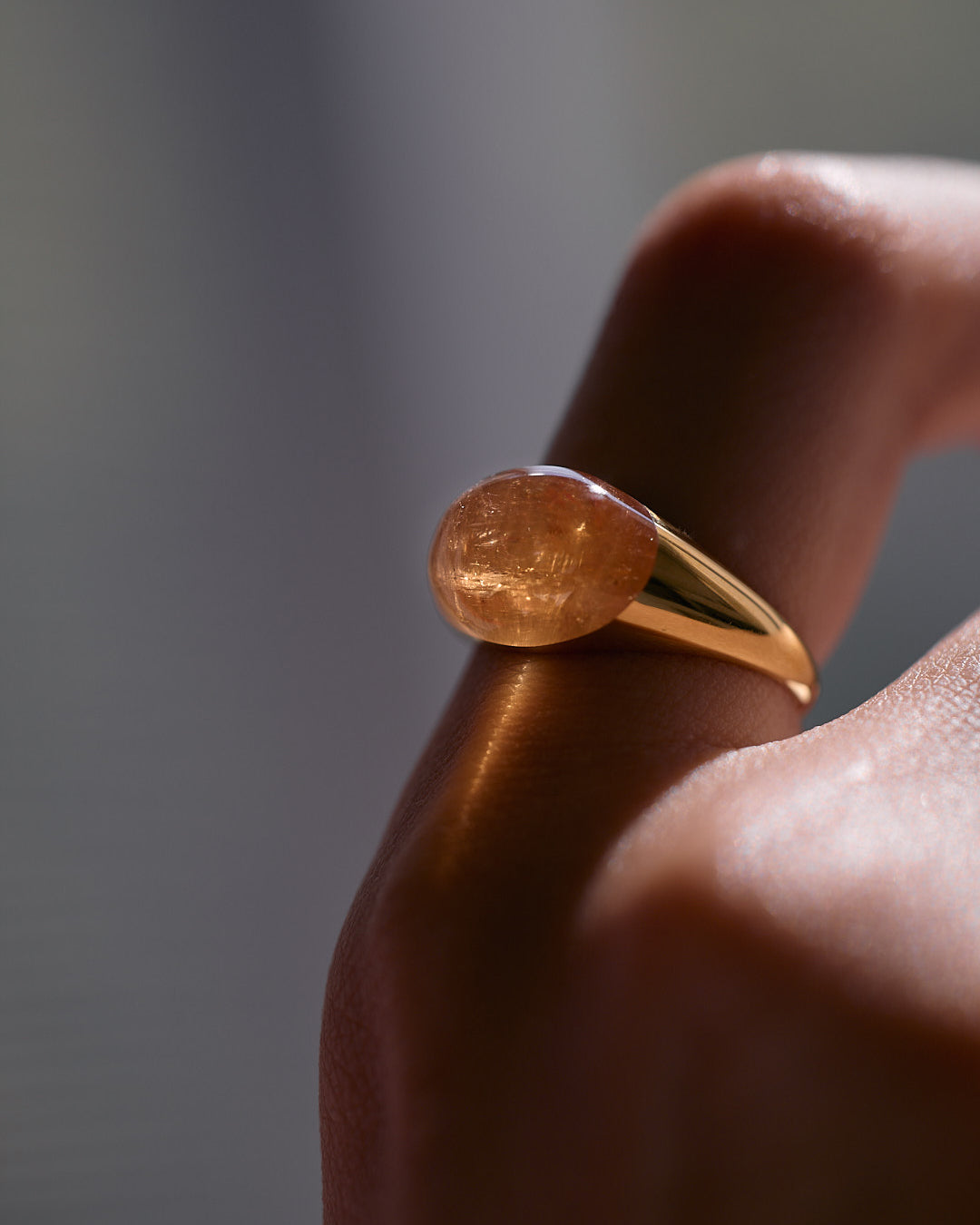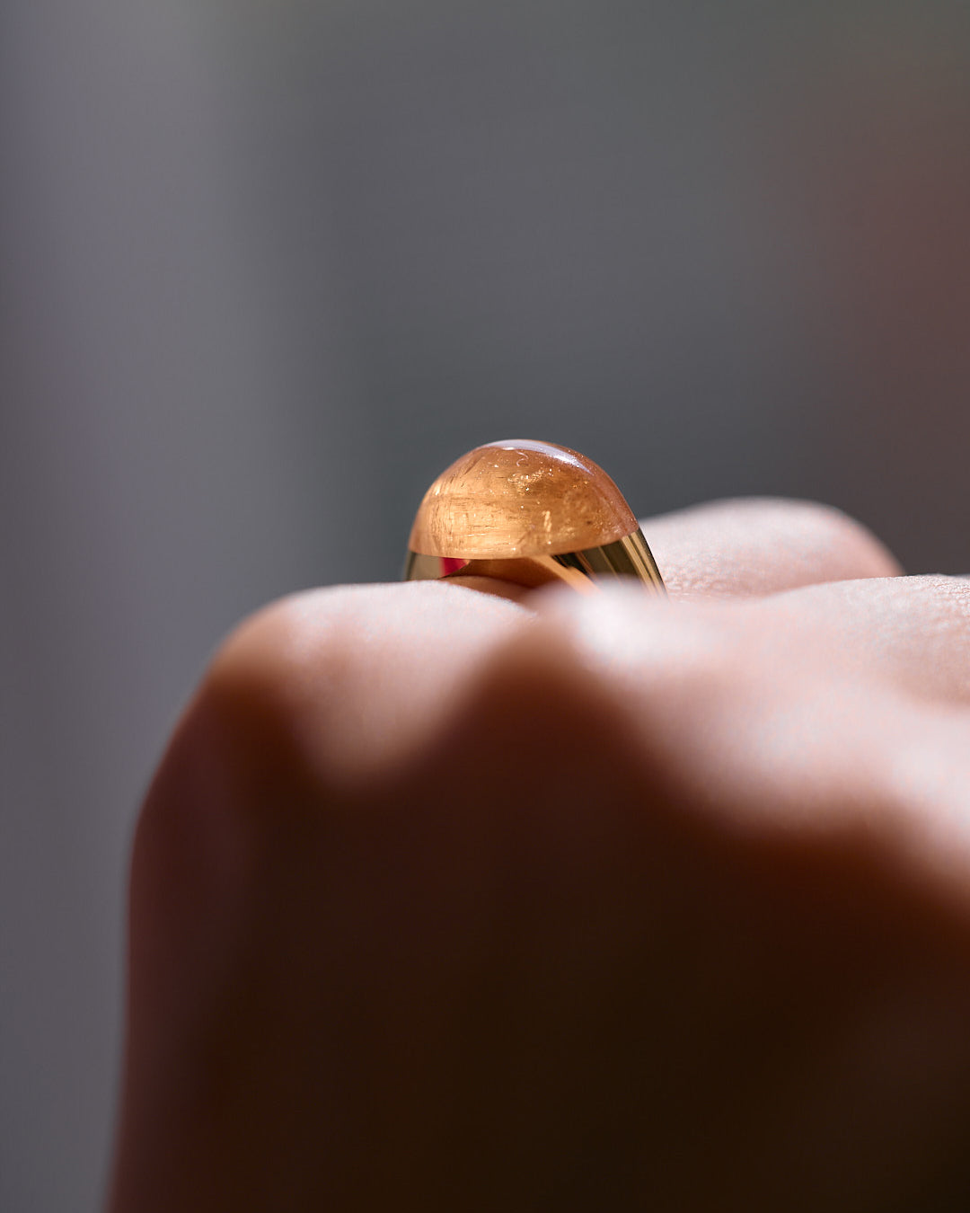 [One-of-a-kind] Aquamarine Mini Rock Ring / Round / Yellow