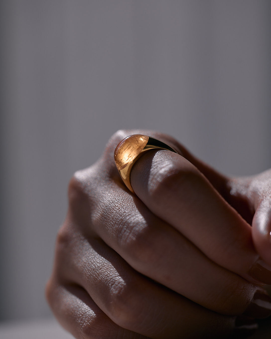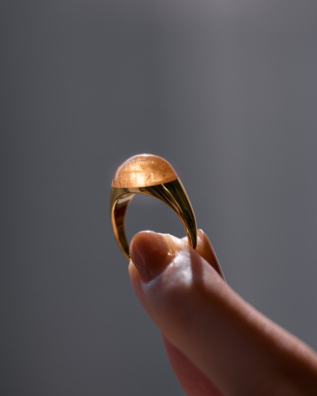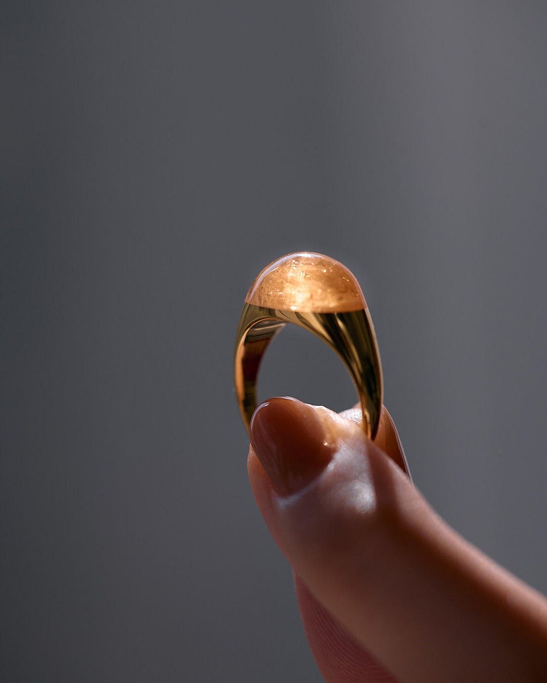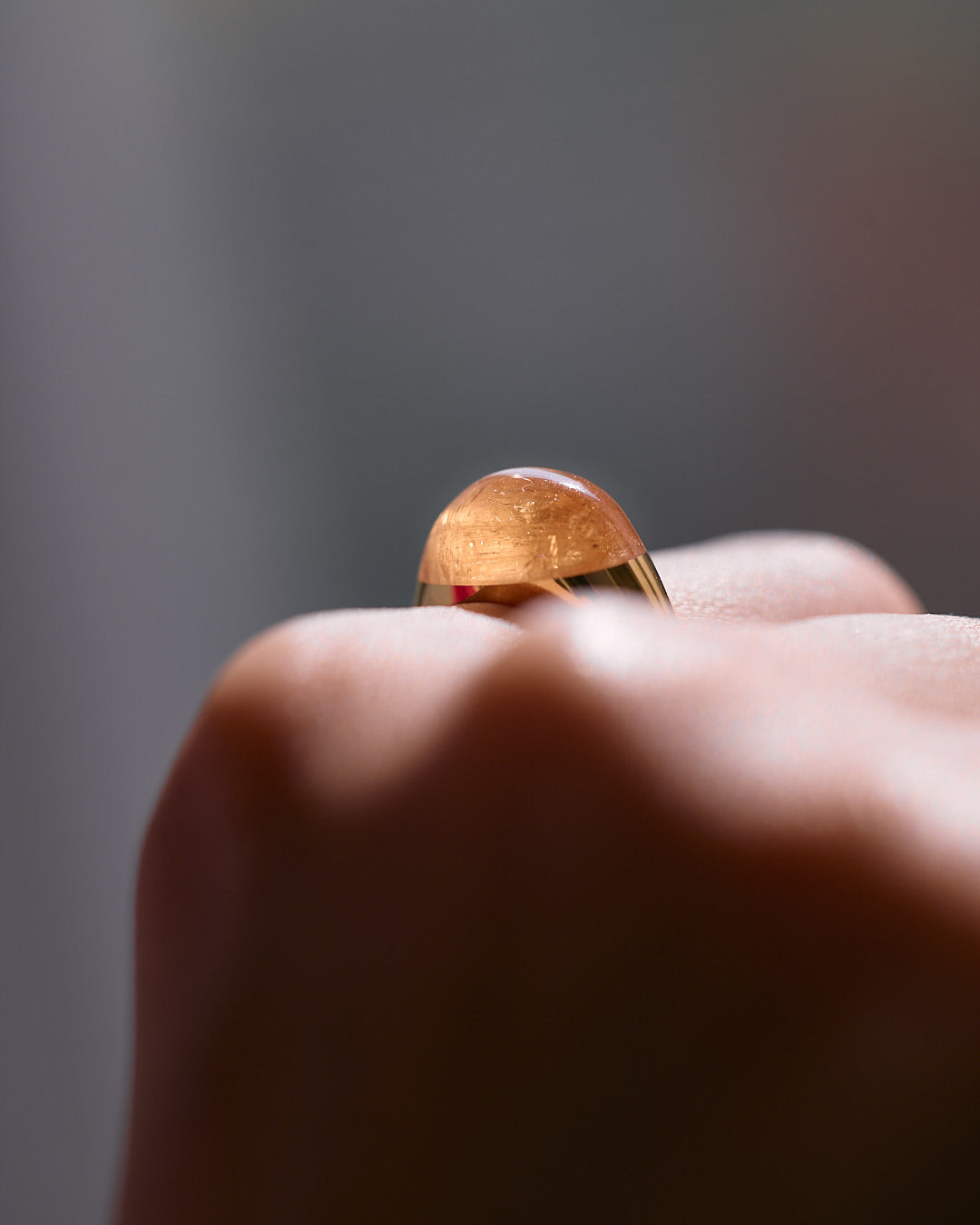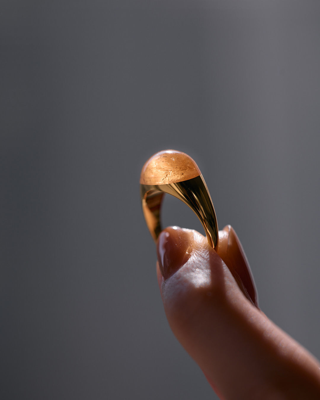 [One-of-a-kind] Aquamarine Mini Rock Ring / Round / Yellow