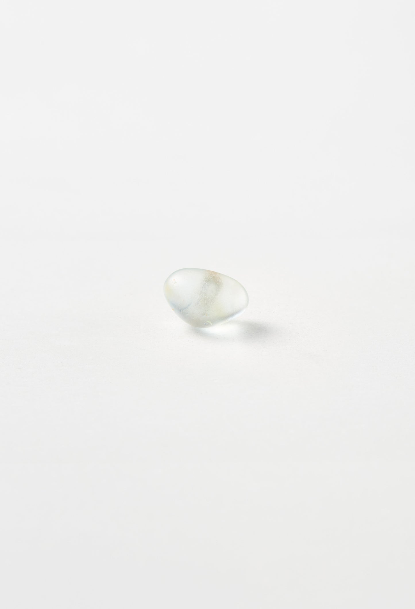 The stone itself is almost transparent, but the surface is semi-matte, so it is covered in soft light that lights faintly from inside.