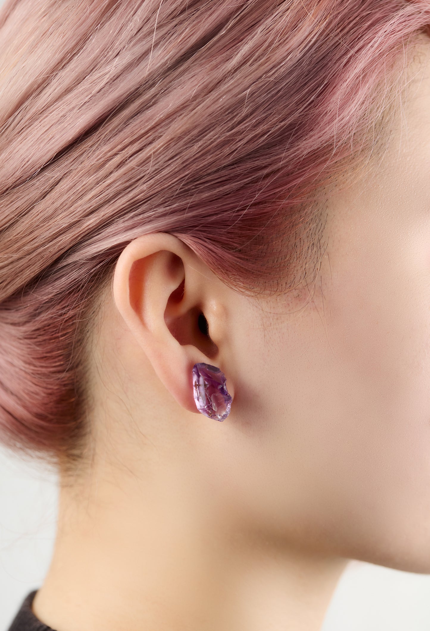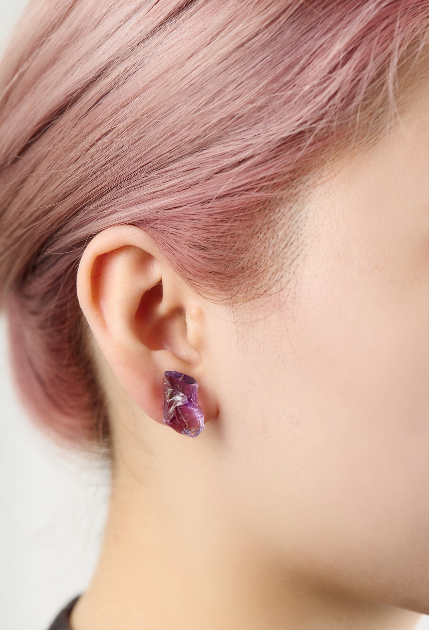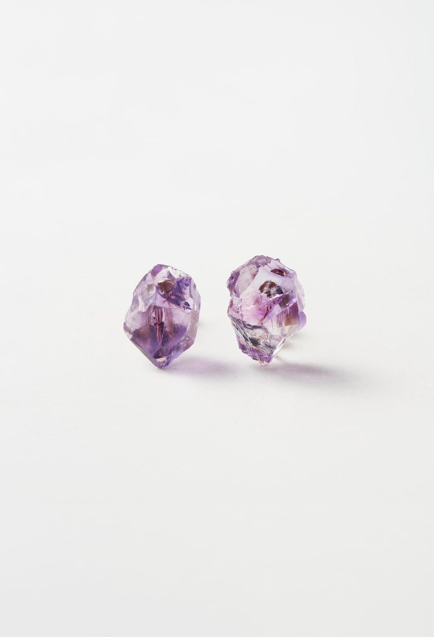 This item is made into earrings by choosing the point of the long, elongated amethyst crystal column. Some of these are rare pieces that contain patterns called phantoms that are reminiscent of the shadows of mountains as the crystals form, and are entrapped by air bubbles and other substances at the boundaries.