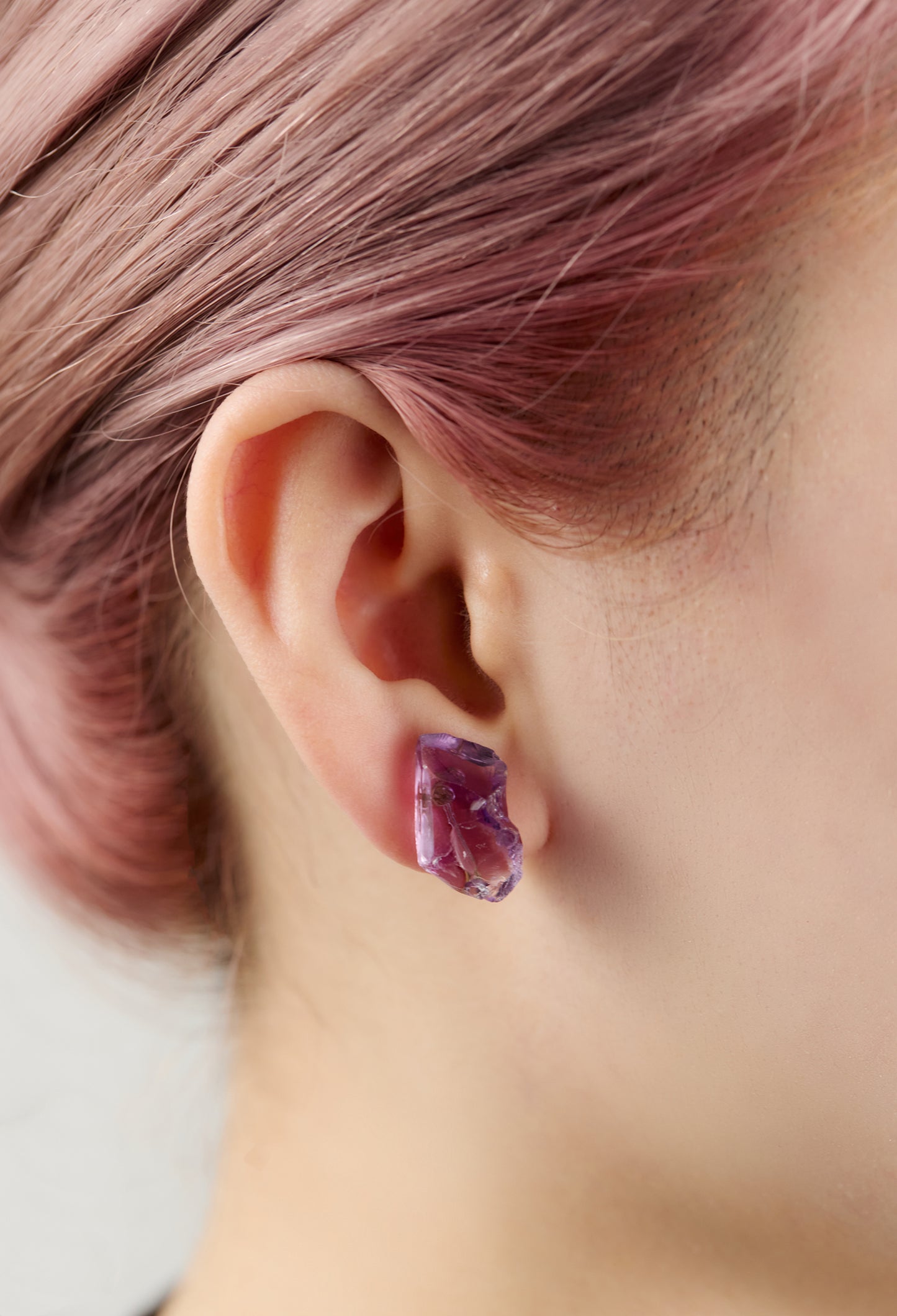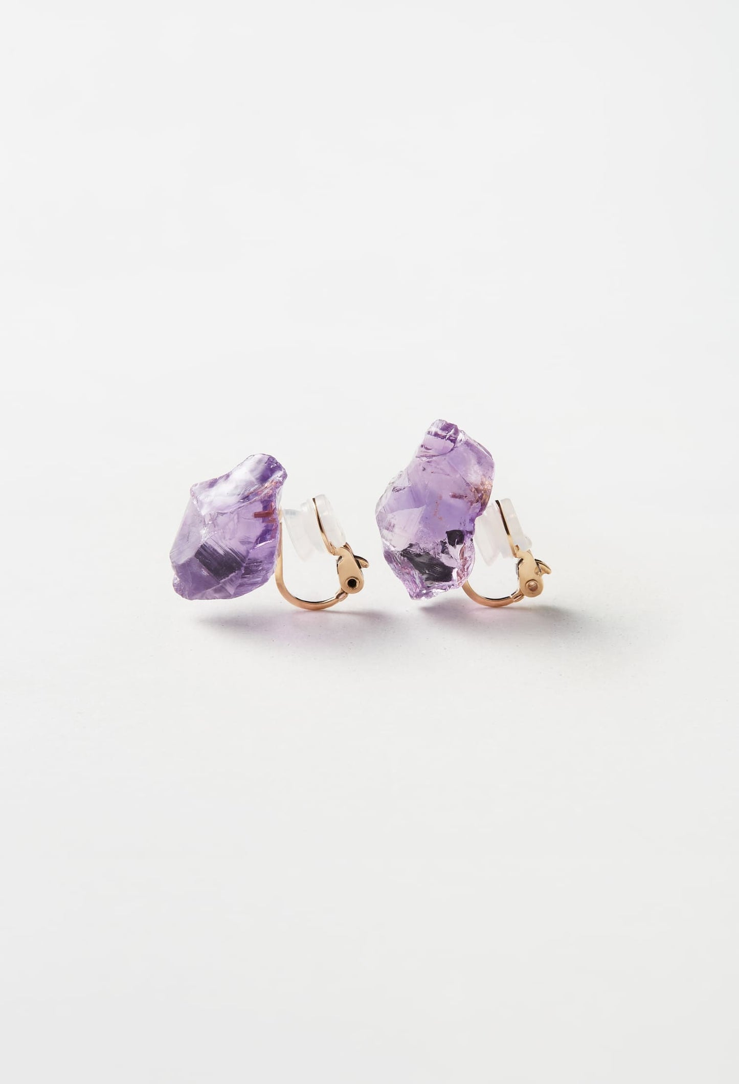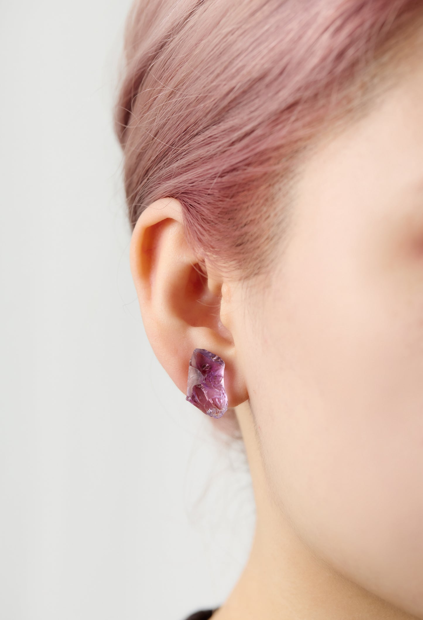 This item is made into earrings by choosing the point of the long, elongated amethyst crystal column. Some of these are rare pieces that contain patterns called phantoms that are reminiscent of the shadows of mountains as the crystals form, and are entrapped by air bubbles and other substances at the boundaries.