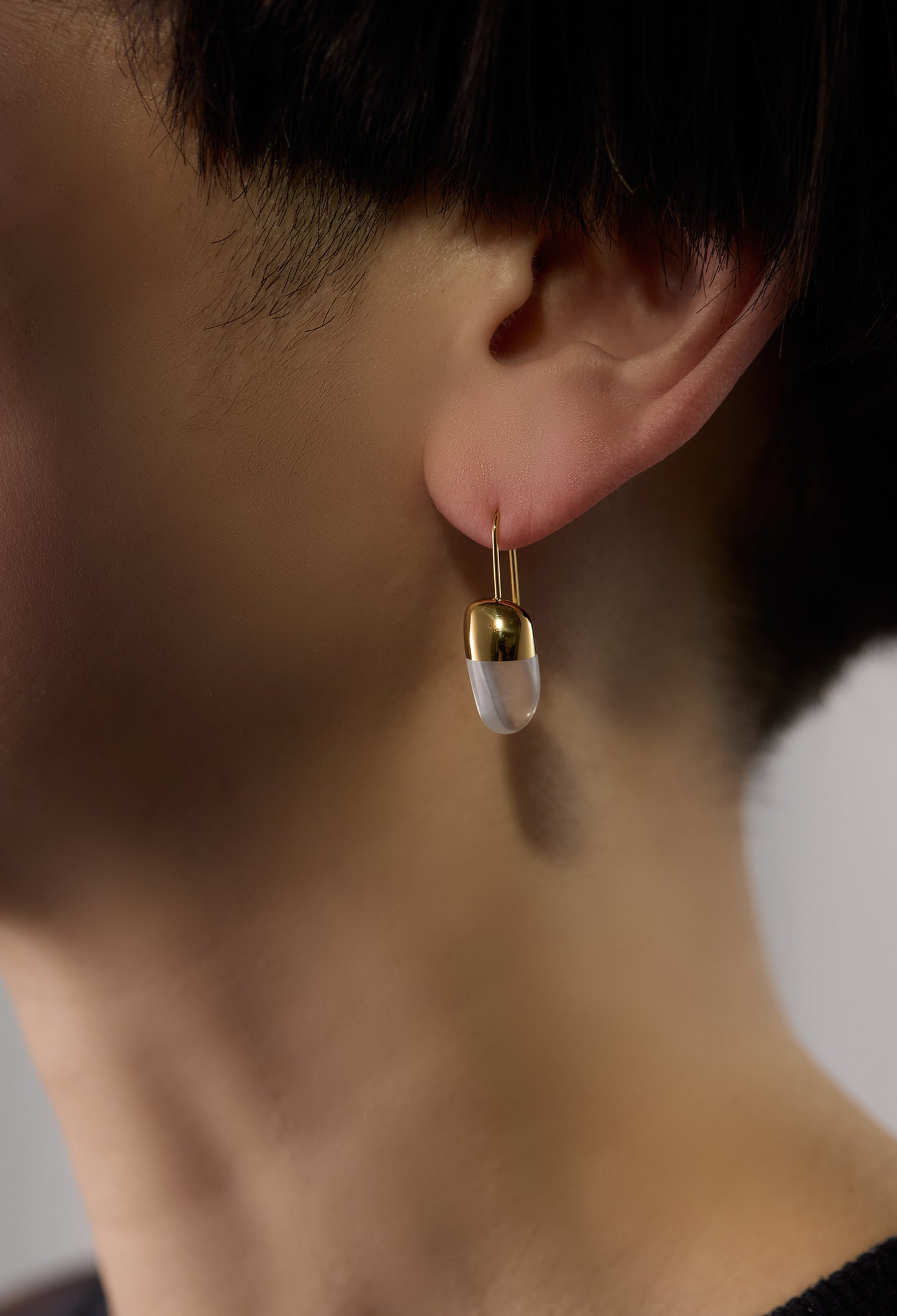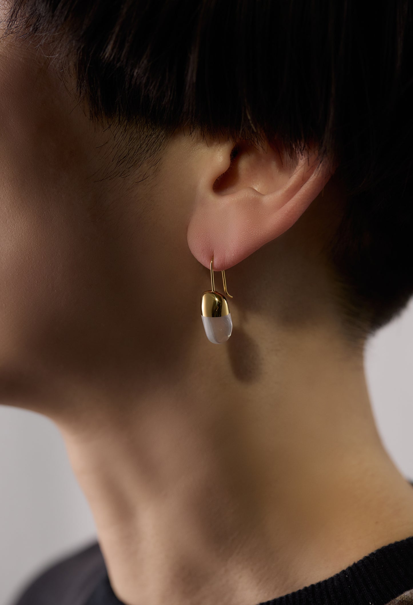 Milky Quartz Rock Pierce / Vertical Round / Hook