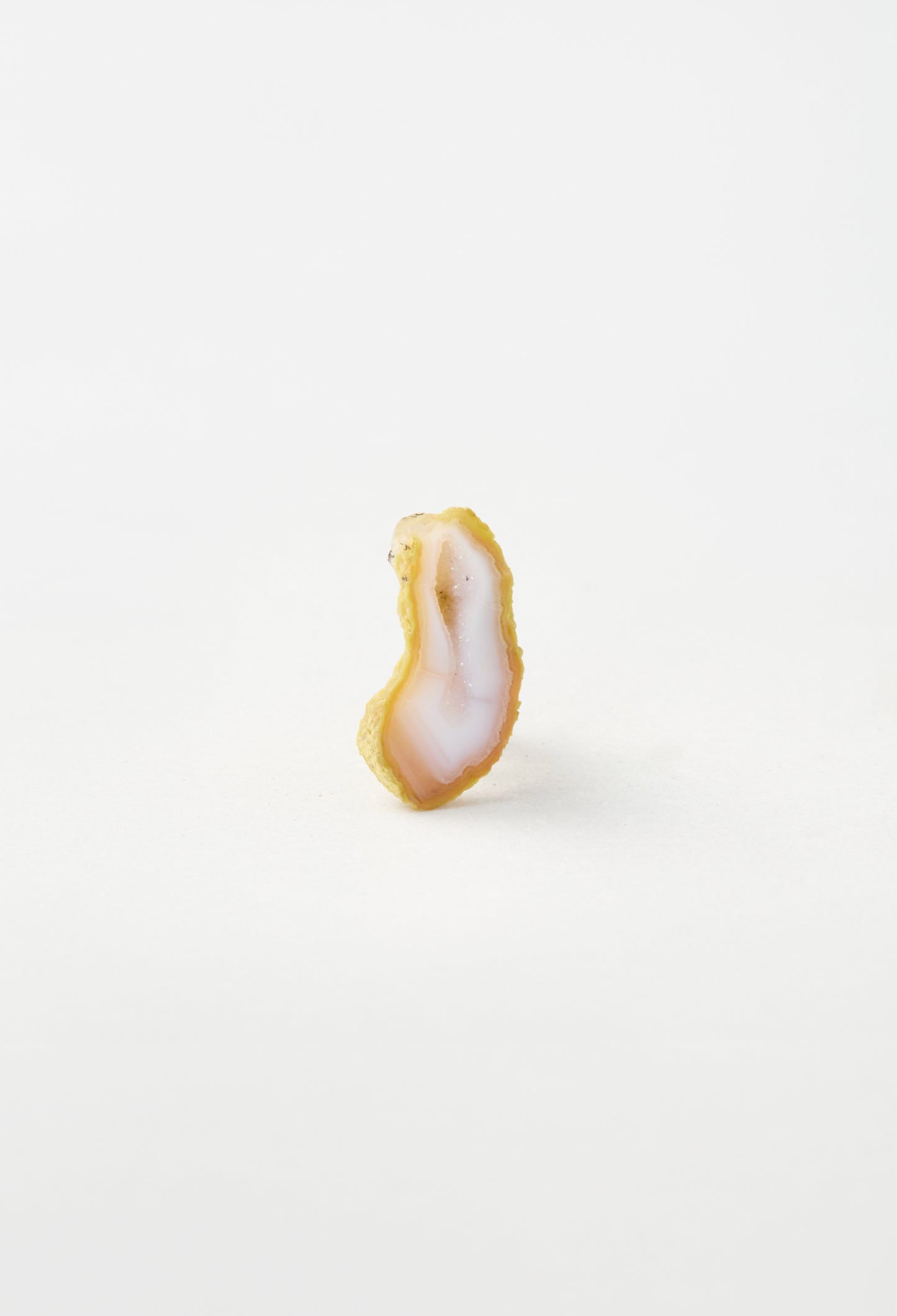 A Brazilian geode with many fine crystals growing in the cavity formed inside the agate. The Japanese name is Shokaku.