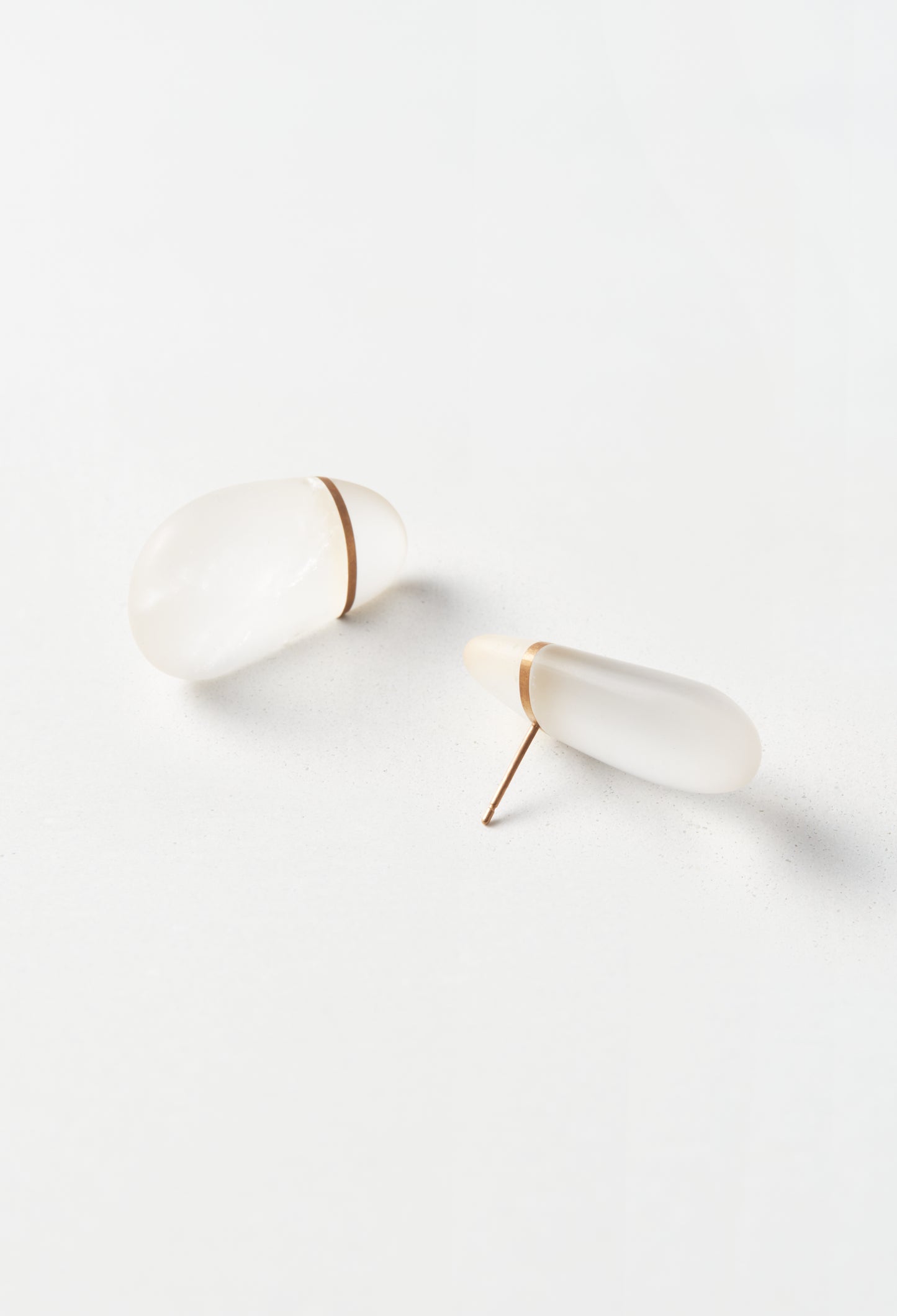 It expresses the shape of river stones created through the activities of eternal nature. These earrings have a setting that cuts the stone and sandwiches a K18 plate, and the organic shape stands out.