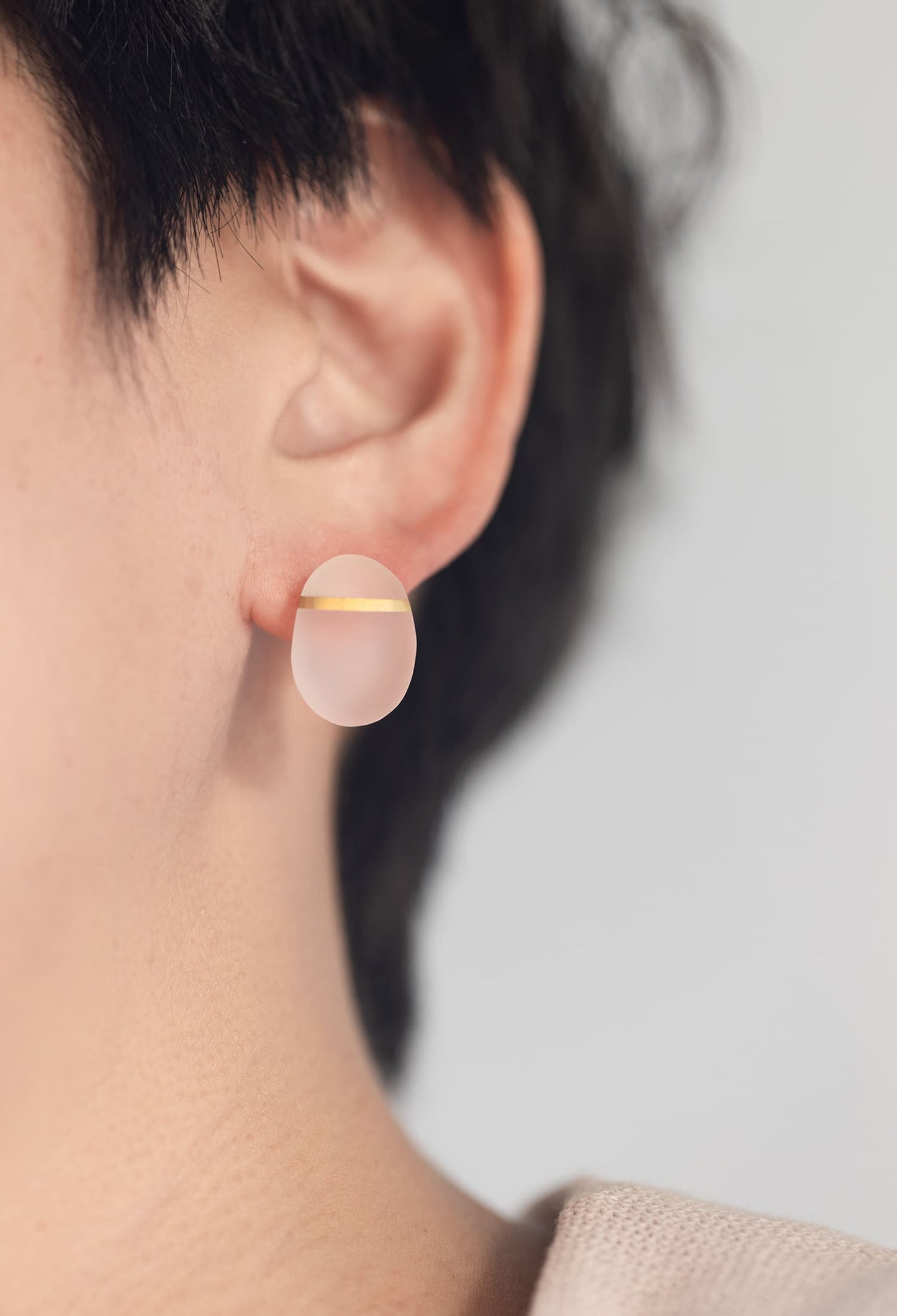It expresses the shape of river stones created through the activities of eternal nature. These earrings have a setting that cuts the stone and sandwiches a K18 plate, and the organic shape stands out.
