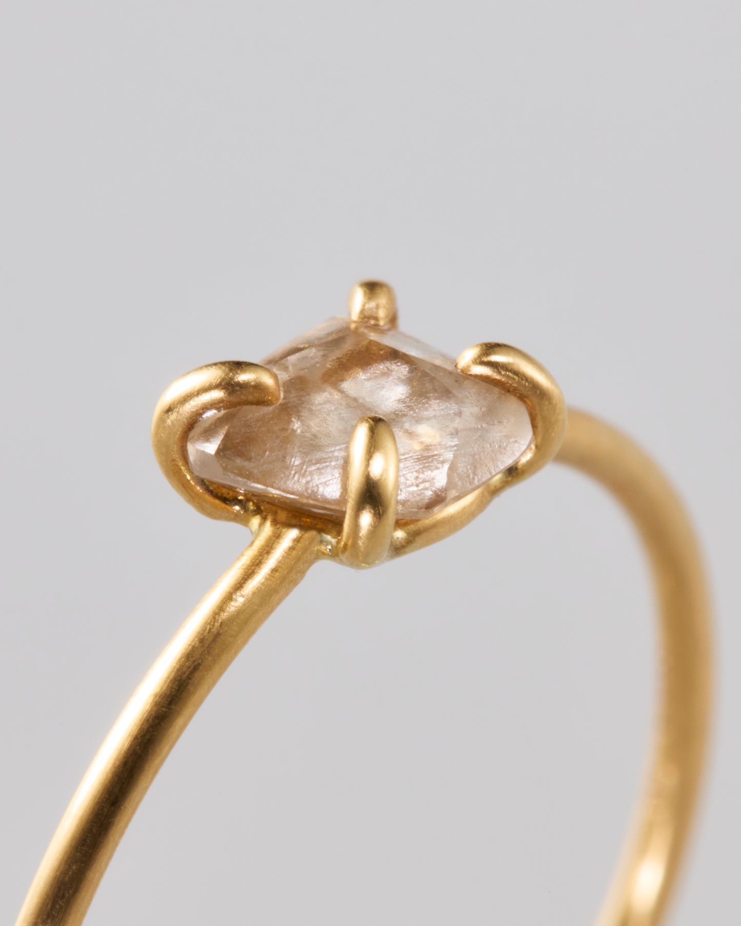 Milky Quartz Mini Rock Ring / Faceted Round / Yellow