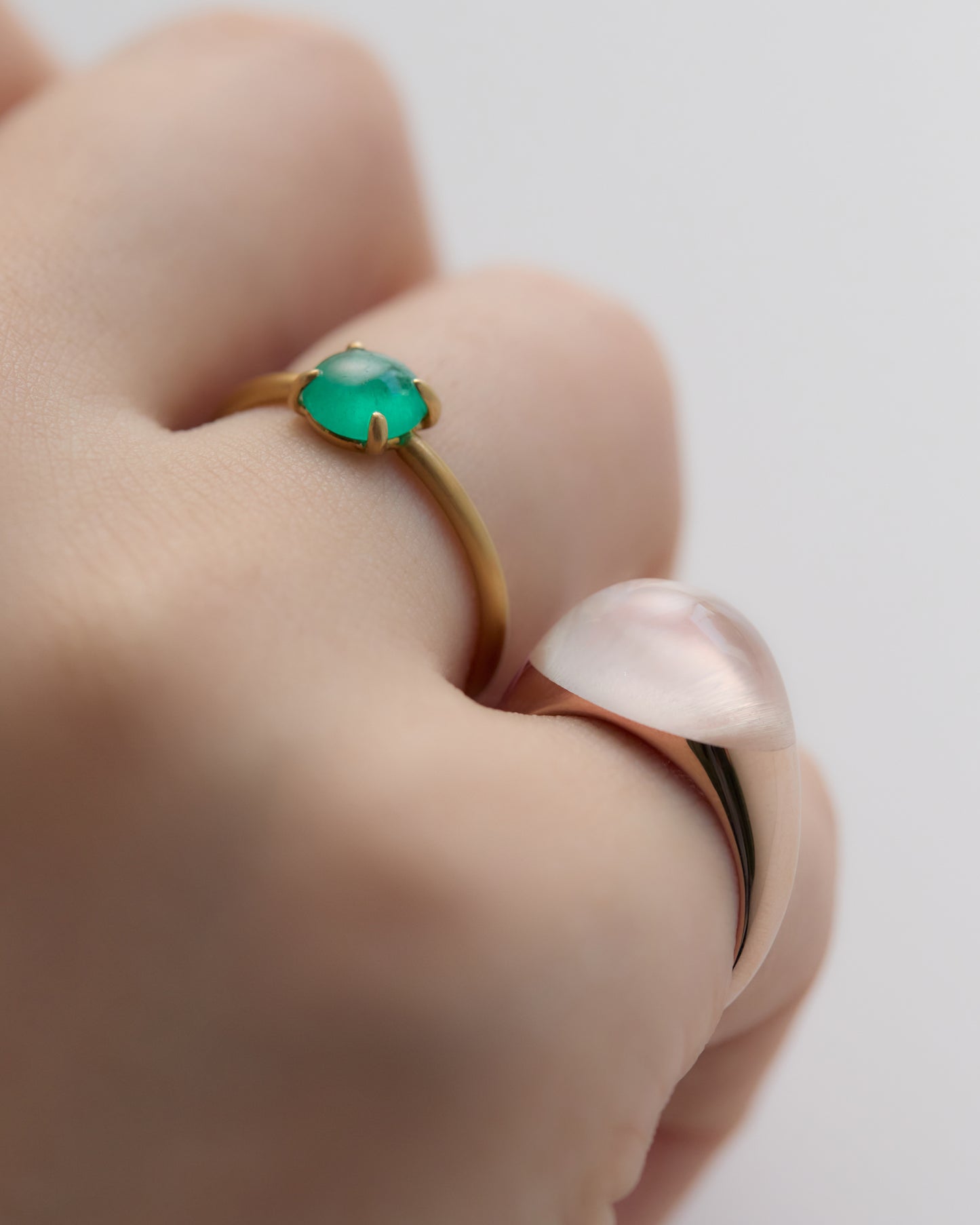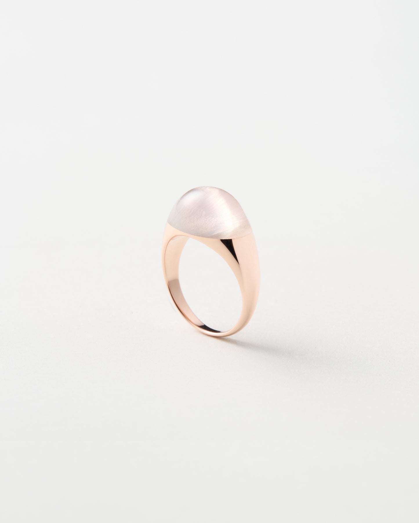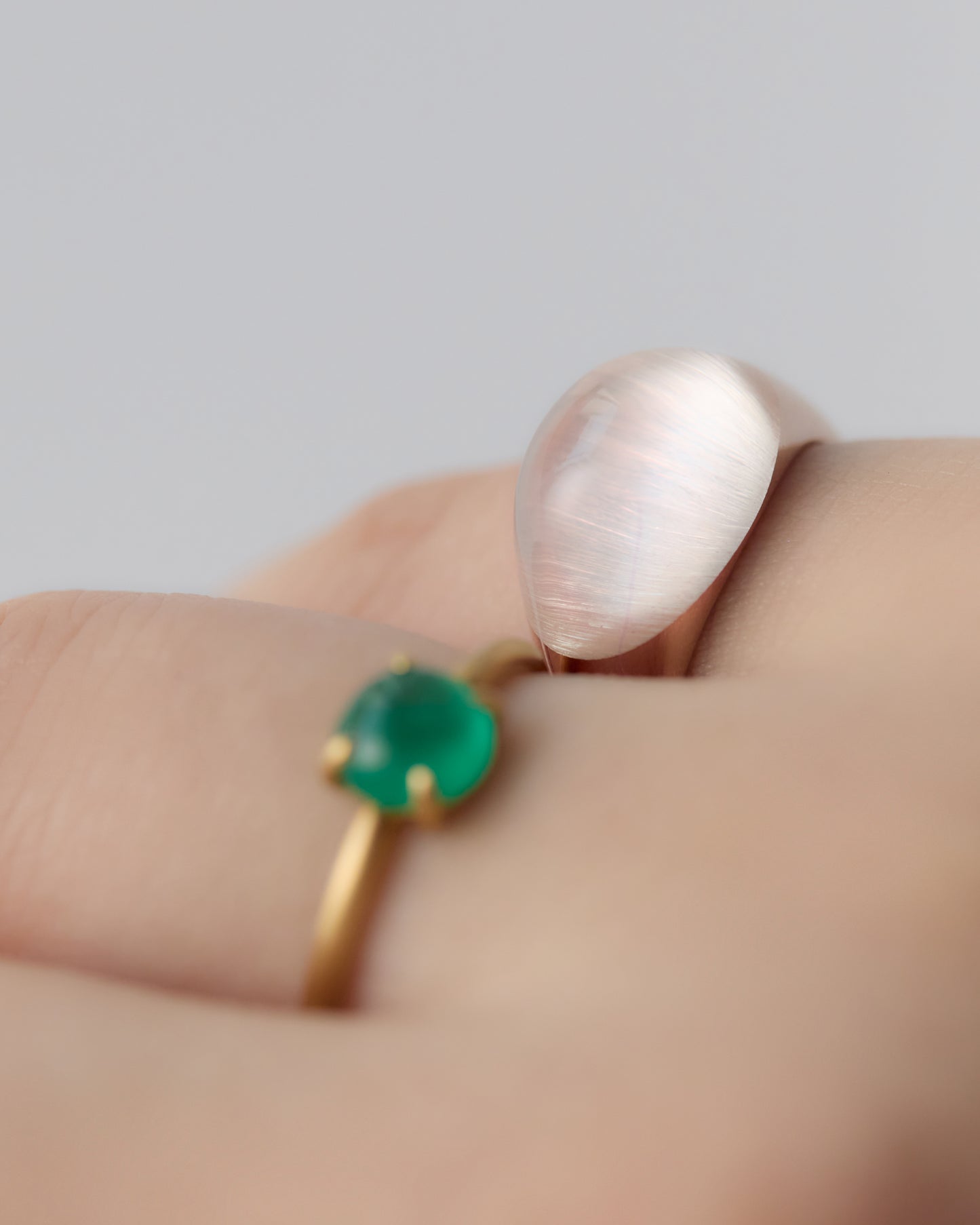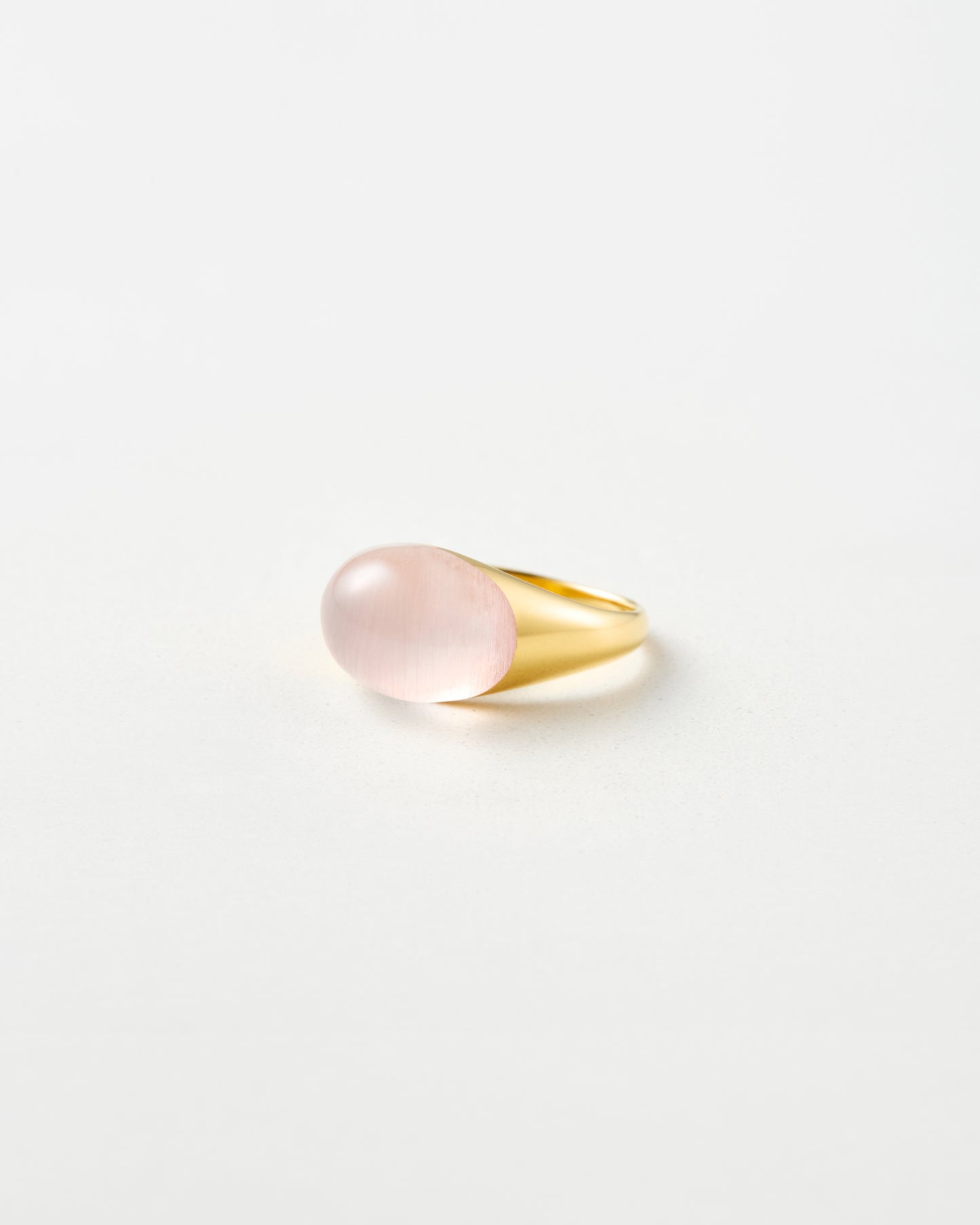 Rose Quartz Mini Rock Ring / Round / Yellow