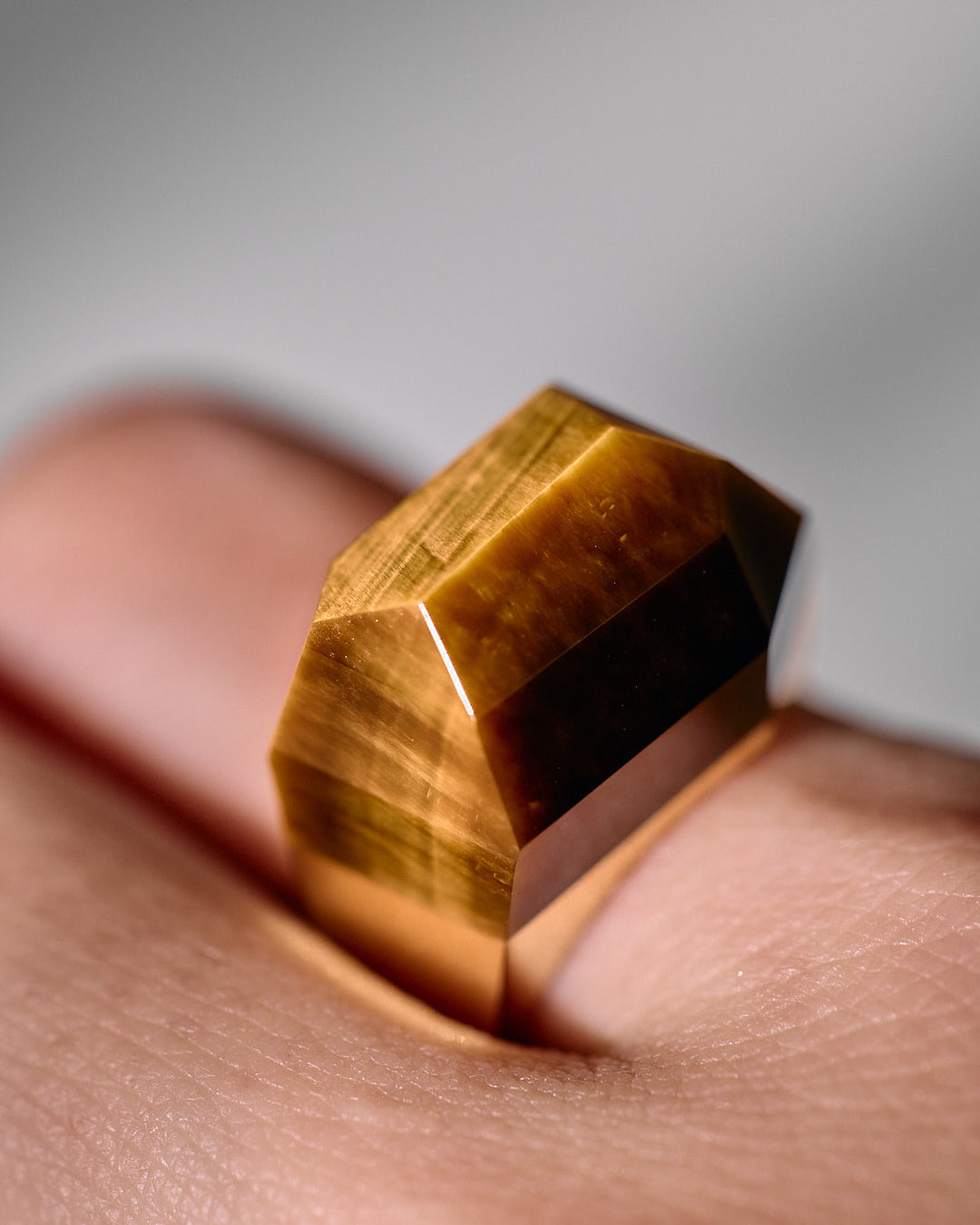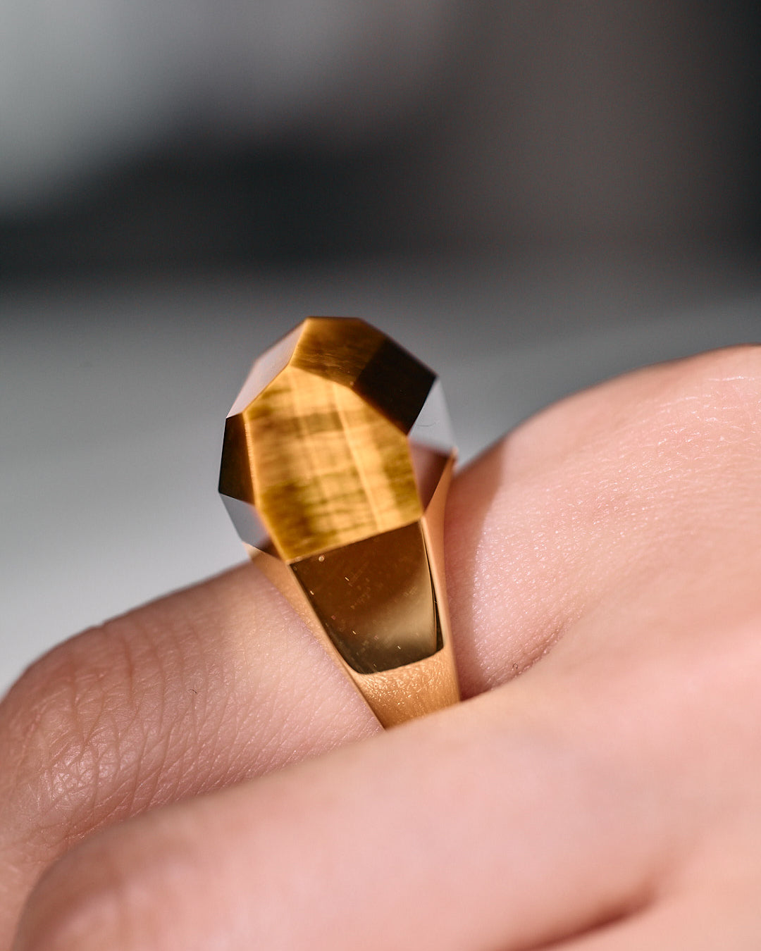 Tiger's Eye has the cat's eye effect, with a stripe-like pattern when polished, and it also has a tiger-like color scheme. The luxuriously made stone rock series shape accentuates the beautiful stripes.