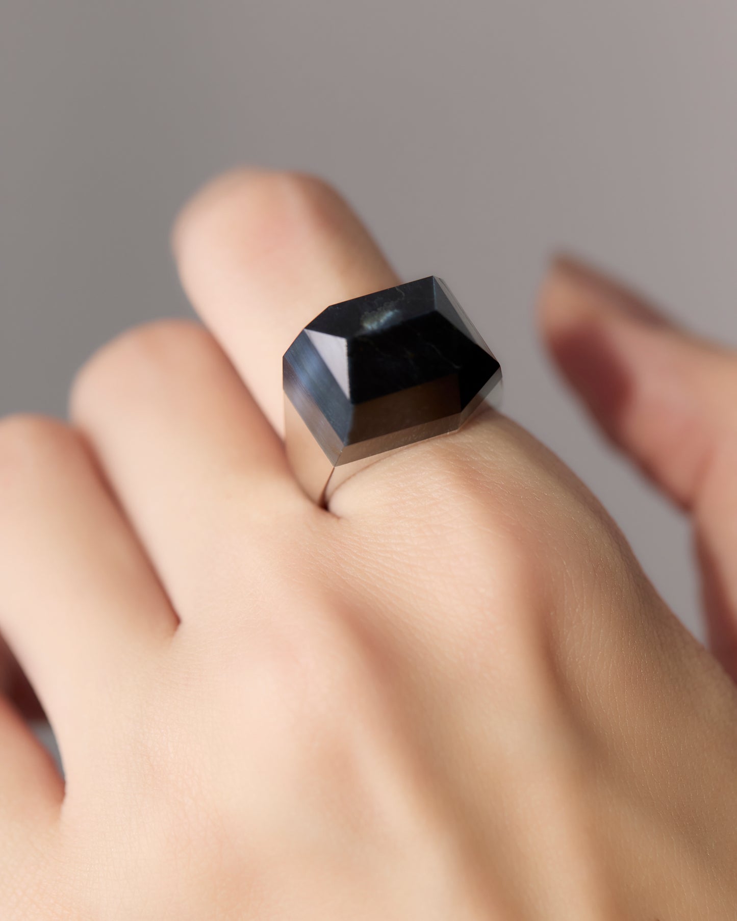 [One-of-a-kind] Hawk's Eye Rock Ring / Round / Yellow