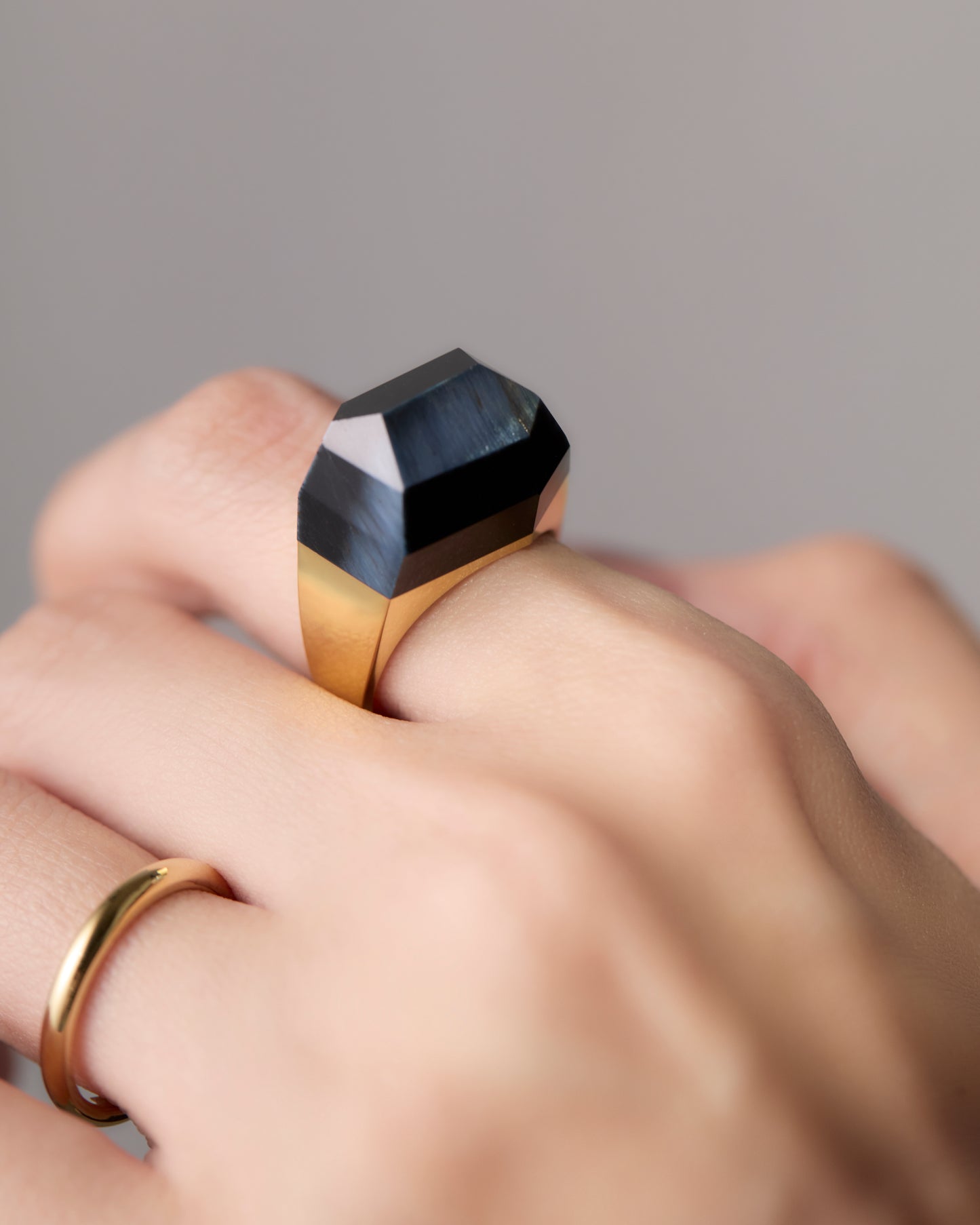 [One-of-a-kind] Hawk's Eye Rock Ring / Round / Yellow
