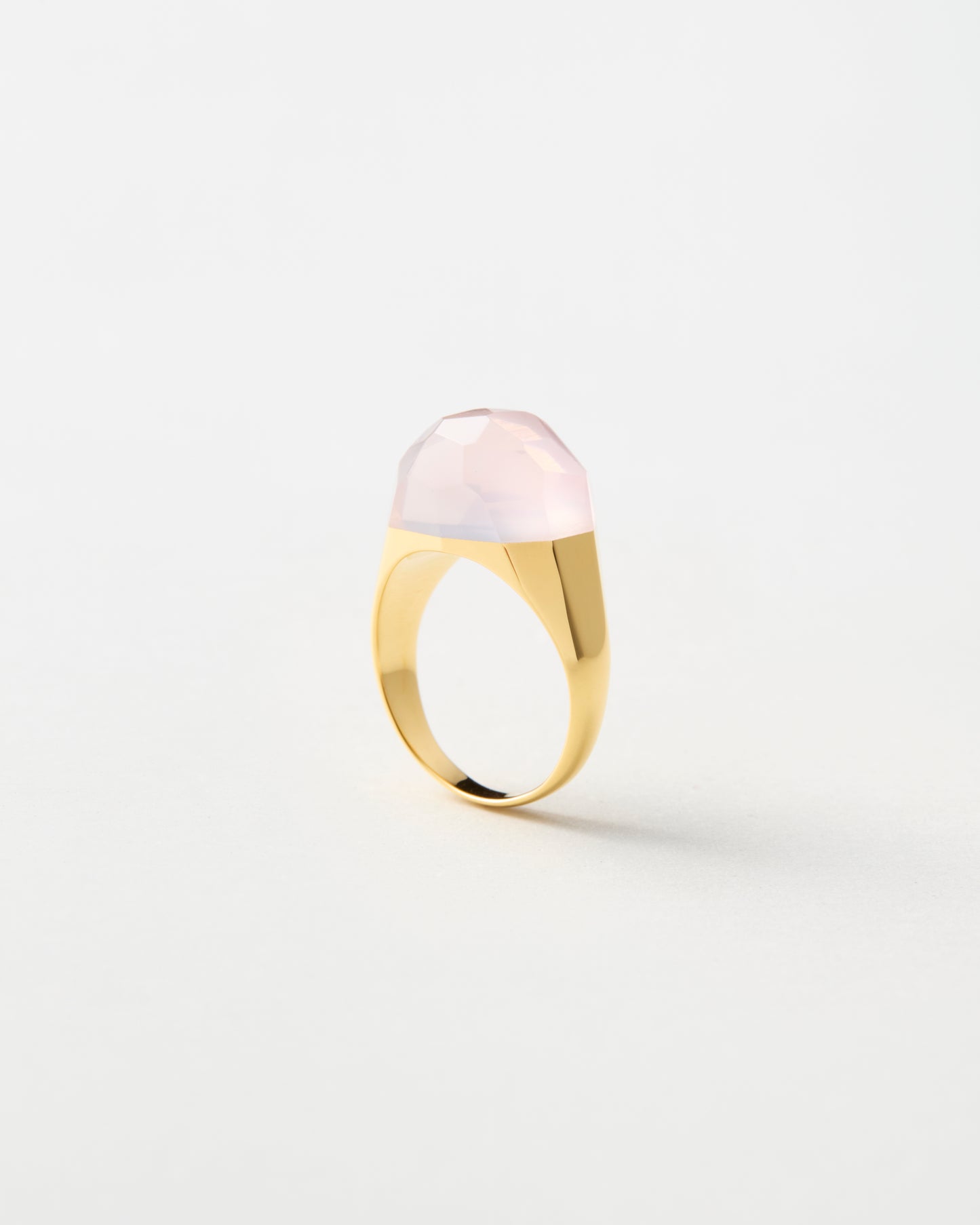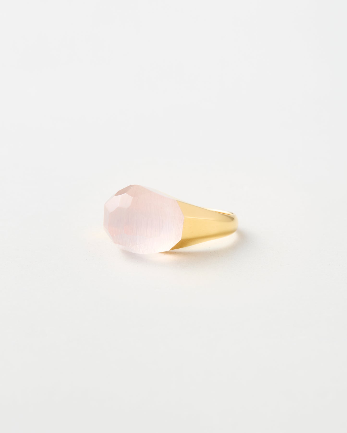 Rose Quartz Mini Rock Ring / Faceted Round / Yellow