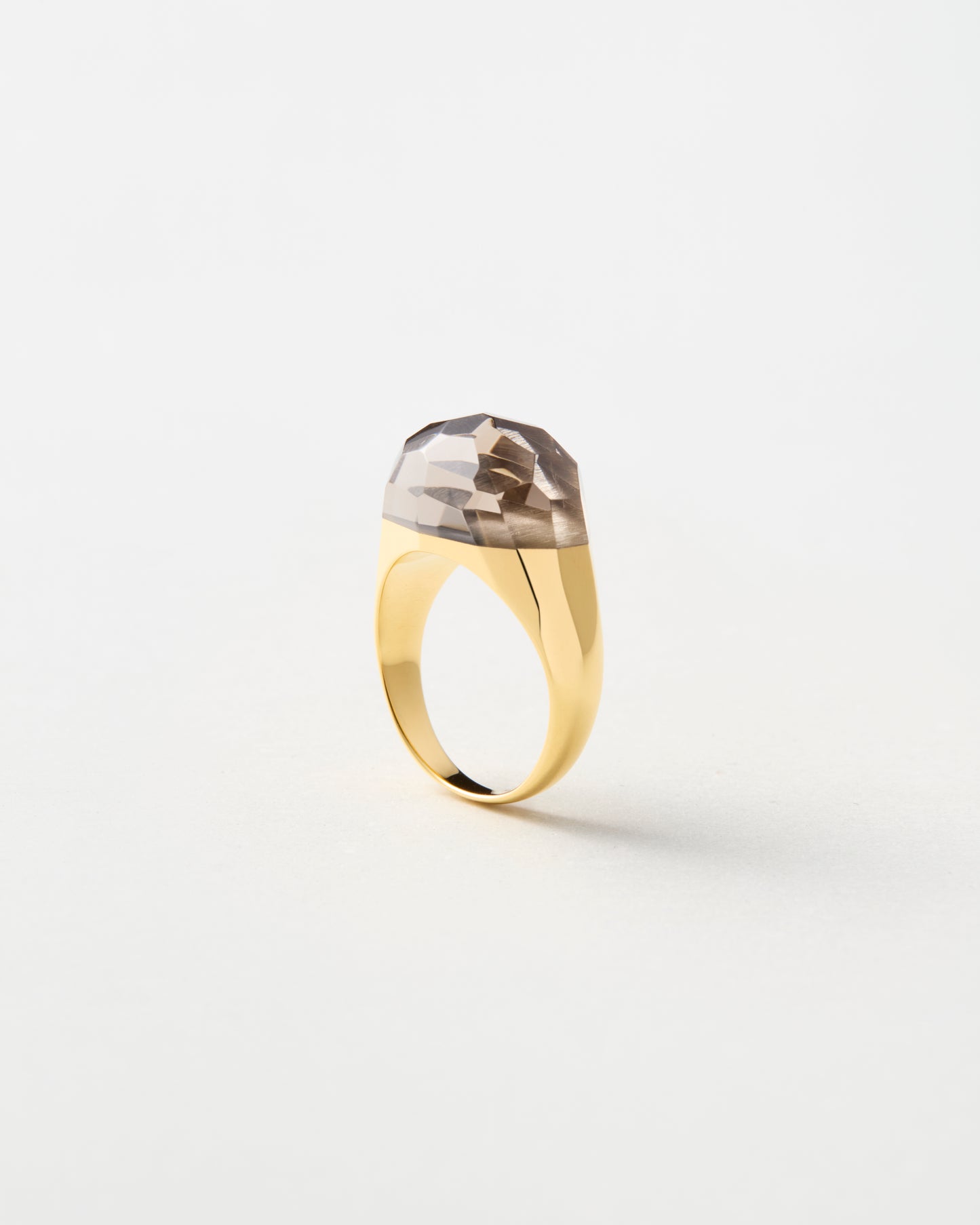 Smoky Quartz Mini Rock Ring / Faceted Round / Yellow