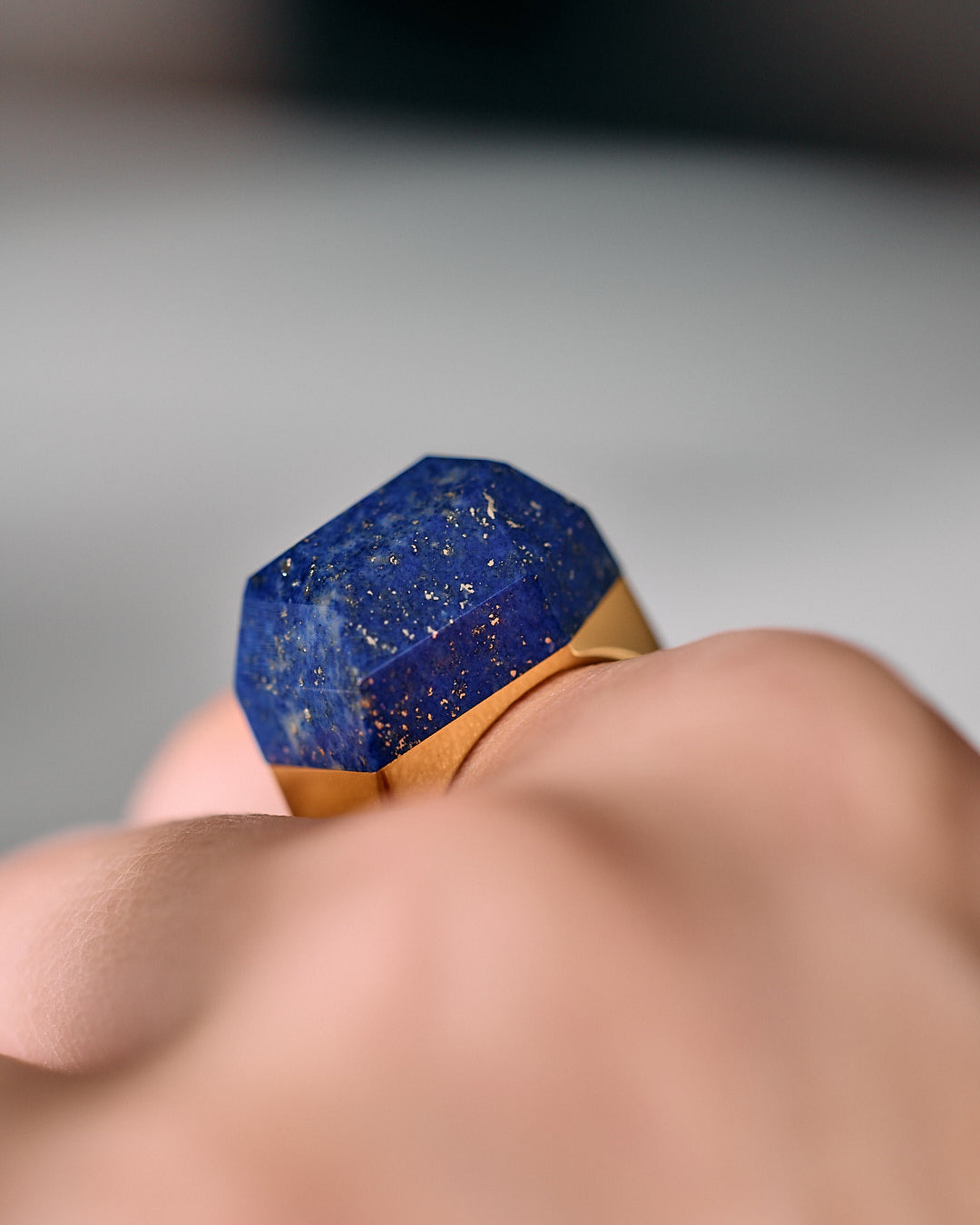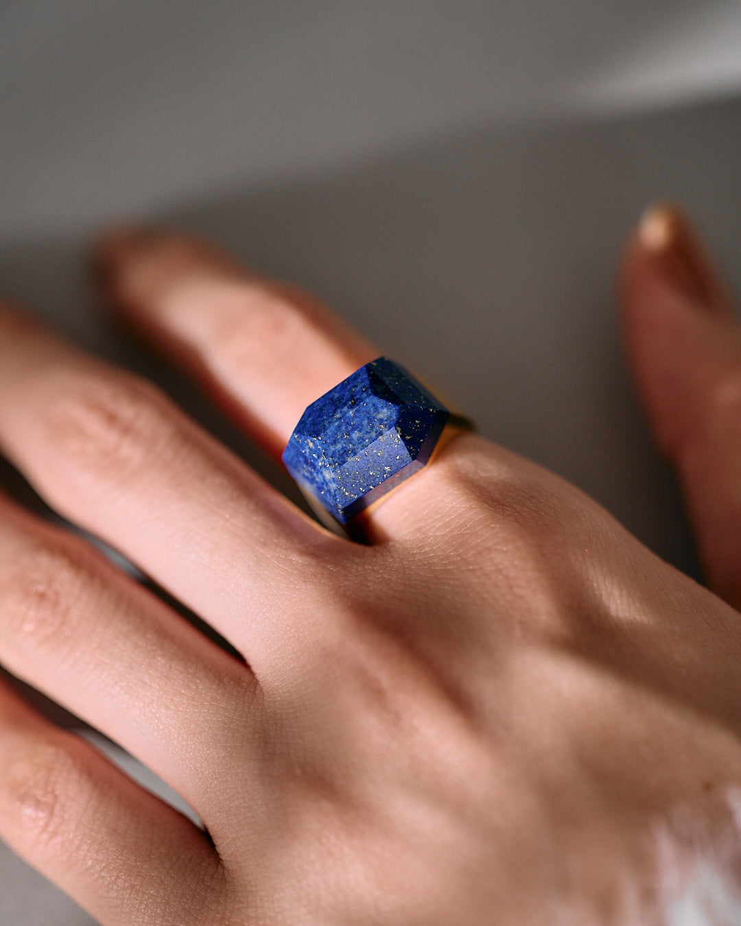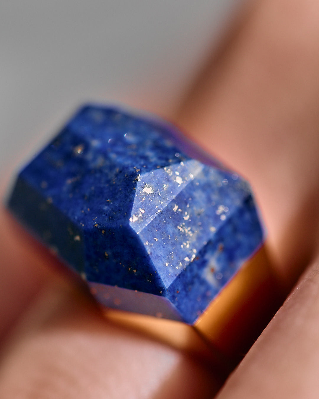 光を通さない重厚感のあるラピスラズリの藍色は、月のない夜空の深さに似ています。宵闇と少し違うのは、星のようにきらめく内包物を有した石もあるところ。