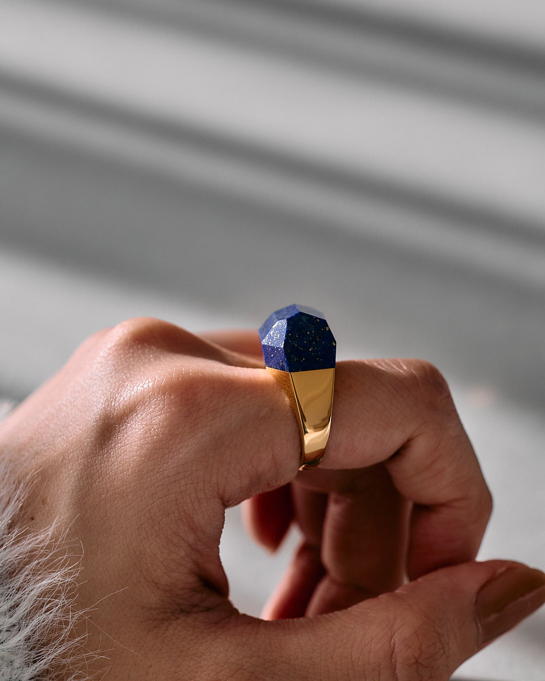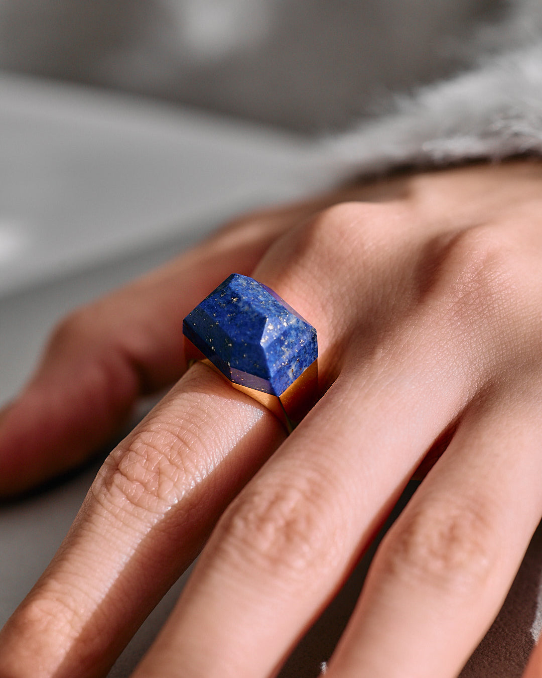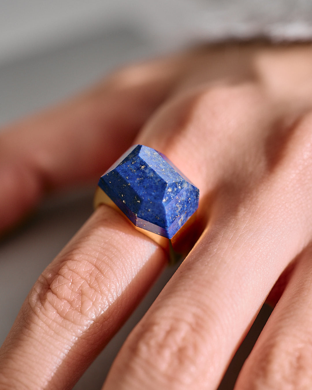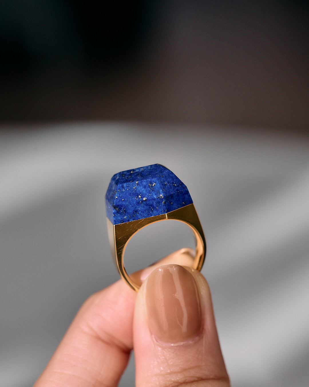 光を通さない重厚感のあるラピスラズリの藍色は、月のない夜空の深さに似ています。宵闇と少し違うのは、星のようにきらめく内包物を有した石もあるところ。