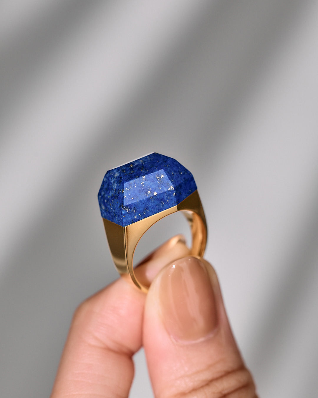 ラピスラズリは黄鉄鉱をはじめとする内包物が彩度の高い青色によく映え、豊かな表情をもたらしてくれます。 紀元前から宝飾品として用いられたラピスラズリはシルクロードを通じて日本にも運ばれ、瑠璃の名称で親しまれてきました。 あざやかな青色を意味する「群青」は、この石を用いた岩絵具をさす言葉です。西洋絵画ではラピスラズリを用いたフェルメールブルーが有名ですね。